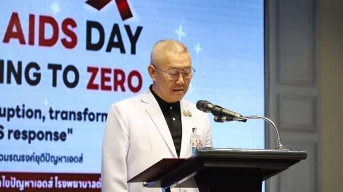 วันจันทร์ที่ 1 ธันวาคม 2568 ณ ลานกิจกรรมชั้น 2 อาคารมหาภูมิพลราชานุสรณ์ 88 พรรษา โรงพยาบาลตำรวจ และบริเวณทางเชื่อมรถไฟฟ้า BTS อาคารเฉลิมพระเกียรติ รัชกาลที่ 9 ชั้น 2 พล.ต.ท.ไพบูลย์ เจียมอนุกูลกิจ นายแพทย์ (สบ 8)โรงพยาบาลตำรวจ รักษาราชการแทน นายแพทย์ใหญ่ (สบ 8)เปิดโครงการ WORLD AIDS DAY 2025 GETTING TO ZERO “Overcoming disruption, transforming the AIDS response” โรงพยาบาลตำรวจร่วมรณรงค์ยุติปัญหาเอดส์ พร้อมด้วย พล.ต.ต.เกษม รัตนสุมาวงศ์ รองนายแพทย์ใหญ่ (สบ 7) โรงพยาบาลตำรวจ, พล.ต.ต.หญิง พันวดี รัตน์สุมาวงศ์ นายแพทย์ (สบ 7) โรงพยาบาลตำรวจ, ผู้บังคับการอำนวยการ โรงพยาบาลตำรวจ, พล.ต.ต.หญิง คนึงนิจ สิงห์ไกร พยาบาล (สบ 6) โรงพยาบาลตำรวจ และคณะผู้บริหาร โรงพยาบาลตำรวจ ร่วมเป็นเกียรติในพิธี