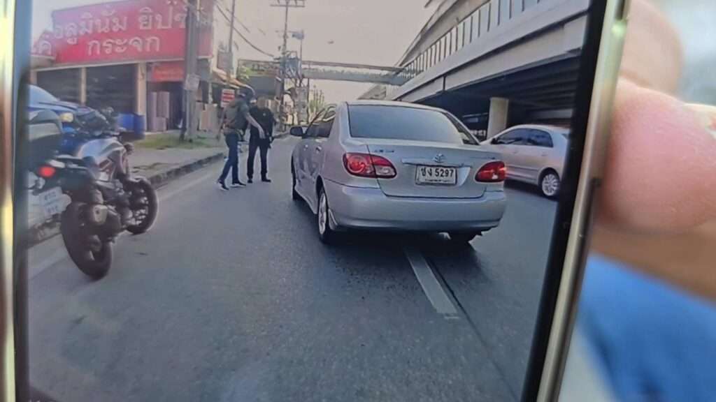 จากการตรวจสอบเบื้องต้นที่เกิดเหตุ พบรถยนต์เก๋งส่วนบุคคล ยี่ห้อโตโยต้า รุ่นโคโรลล่า อัลติส สีบรอนซ์ ทะเบียน ชง 5297 กรุงเทพมหานคร จอดอยู่บริเวณผิวจราจรไม่ชิดไหล่ทาง ใกล้กันมีรถจักรยานยนต์แบบบิ๊กไบค์ ยี่ห้อฮอนด้า รุ่น CB 500X ทะเบียน 8 กธ 916 กรุงเทพมหานคร จอดอยู่ริมถนนชิดทางเท้า ทราบชื่อผู้ได้รับบาดเจ็บ คือ นายบดินทร์ สานติสุขรัตน์ อายุ 36 ปี ชาวจังหวัดนนทบุรี ถูกยิงเข้าบริเวณแขนซ้าย 1 นัด เจ้าหน้าที่กู้ภัยและรถพยาบาลได้รีบนำตัวส่งโรงพยาบาลเพื่อทำการรักษา