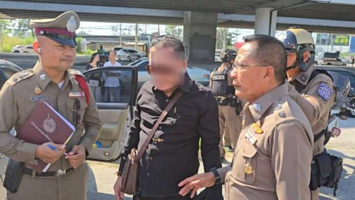 ด้าน พ.ต.อ.พฤฒ จำรูญศาสน์ ผกก.สภ.บางบัวทอง กล่าวว่า เบื้องต้นหลังได้รับแจ้งเหตุ เจ้าหน้าที่ตำรวจได้เดินทางไปที่เกิดเหตุ โดยผู้ก่อเหตุได้ยืนรอมอบตัวพร้อมด้วยของกลางอาวุธปืนพกสั้น ขนาด 9 มม. จึงได้เข้าควบคุมตัว มาที่สภ.บางบัวทอง เพื่อสอบปากคำ โดยเบื้องต้นแจ้ง 3 ข้อหา 1.พยายามฆ่า 2.พกพาอาวุธปืนในที่สาธารณะ 3.ยิงปืนในที่สาธารณะ จากการตรวจสอบพบว่าปืนมีทะเบียน แต่ผู้ก่อเหตุไม่มีใบอนุญาตพกพา จึงได้นำตัวดำเนินคดีตามกฎหมาย