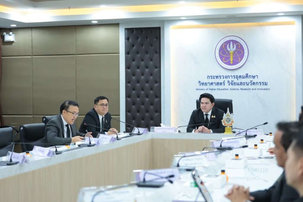 วันที่ 2 ธ.ค. 2568 นายสุรศักดิ์ พันธ์เจริญวรกุล รัฐมนตรีว่าการกระทรวงการอุดมศึกษา วิทยาศาสตร์ วิจัยและนวัตกรรม (อว.) และ ศ.ดร.วิเลิศ ภูริวัชร อธิการบดีจุฬาลงกรณ์มหาวิทยาลัย ประธานที่ประชุมอธิการบดีแห่งประเทศไทย (ทปอ.) ร่วมแถลงข่าว “เลื่อนสอบ TGAT/TPAT2-5 ในพื้นที่ที่ได้รับผลกระทบจากน้ำท่วมในพื้นที่ภาคใต้” โดยมี ศ.ดร.ศุภชัย ปทุมนากุล ปลัดกระทรวง อว., นางสาวพิมพ์พร ชีวานันท์ เลขานุการ รมว.อว., นายวันนี นนท์ศิริ หัวหน้าผู้ตรวจราชการกระทรวง อว., นางเพ็ญนภา กัญชนะ ผู้ตรวจราชการกระทรวง อว. , ดร.พันธุ์เพิ่มศักดิ์ อารุณี ผช.ปลัดกระทรวง อว., รศ.ดร.ชาลี เจริญลาภนพรัตน์ ผู้จัดการระบบ TCAS69 เข้าร่วม ณ ห้องประชุมชั้น 4 อาคารพระจอมเกล้า สป.อว.