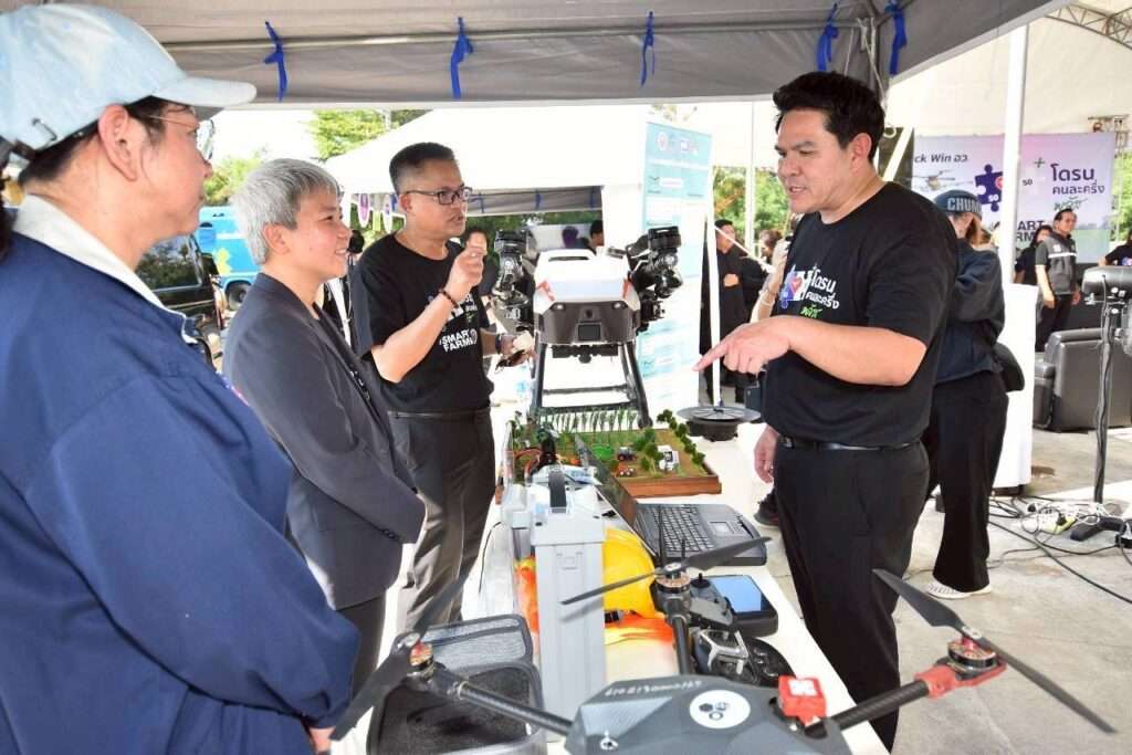 โดยบรรยากาศเป็นไปอย่างคักคัก มีหน่วยงานของกระทรวง อว. ได้แก่ อุทยานวิทยาศาสตร์ภูมิภาค ภายใต้สำนักงานปลัดกระทรวง อว. สำนักงานนวัตกรรมแห่งชาติ (NIA) สำนักงานการวิจัยแห่งชาติ (วช.) สำนักงานพัฒนาวิทยาศาสตร์และเทคโนโลยีแห่งชาติ (สวทช.) กรมวิทยาศาสตร์บริการ (วศ.) สำนักงานพัฒนาเทคโนโลยีอวกาศและภูมิสารสนเทศ (GISTDA) สำนักงานคณะกรรมการส่งเสริมวิทยาศาสตร์ วิจัยและนวัตกรรม (สกสว.) และหน่วยบริหารและจัดการทุนด้านการพัฒนาระดับพื้นที่ (บพท.) นำโดรนชนิดต่างๆ และนิทรรศการมาจัดแสดงมีเกษตรกรให้ความสนใจเป็นจำนวนมาก.จากนั้น นายสุรศักดิ์ ได้มอบหมายให้นายพิษณุ พลธี ที่ปรึกษา รมว.กระทรวง อว., พญ.เพชรดาว โต๊ะมีนา ผู้ช่วย รมต.กระทรวง อว. น.ส.พิมพ์พร ชีวานันท์ เลขานุการ รมว.กระทรวง อว.ร่วมกันกล่าวเปิดงาน