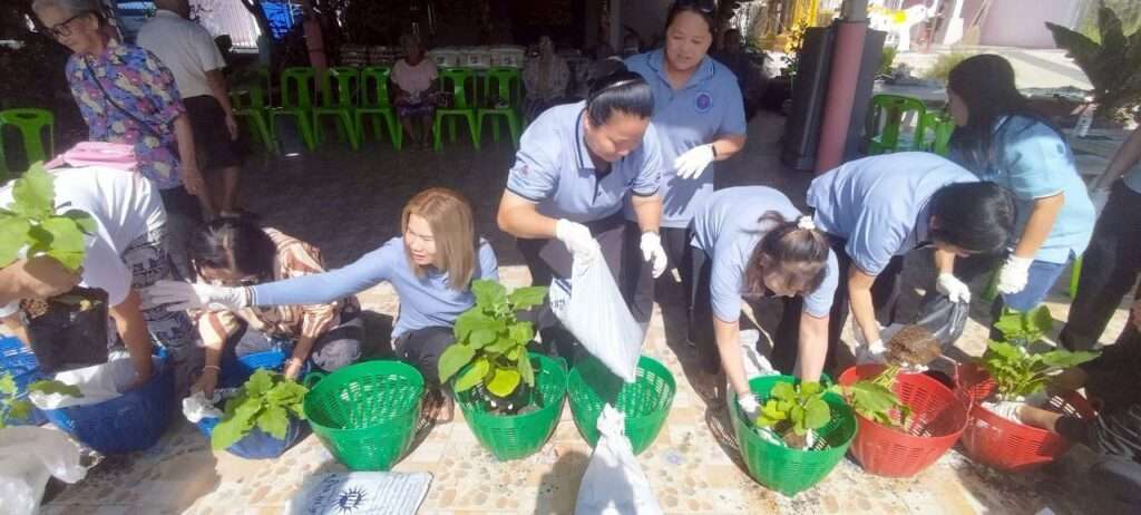 จังหวัดนครนายก โดยกลุ่มจิตอาสาเพื่อสังคม ร่วมกับ นางยุพิน ตู้แก้ว ผู้ใหญ่บ้าน หมู่ที่ 1 ตำบลบางปลากด อำเภอองครักษ์ และผู้ช่วยผู้ใหญ่บ้าน คณะกรรมการชุมชน อาสาสมัครสาธารณสุขประจำหมู่บ้าน (อสม.) ร่วมกันปลูกผักสวนครัวจากการขยายเมล็ดพันธุ์ผักพระราชทาน เพื่อมอบให้ครอบครัวผู้สูงอายุ ผู้มีรายได้น้อย และประชาชนทั่วไป