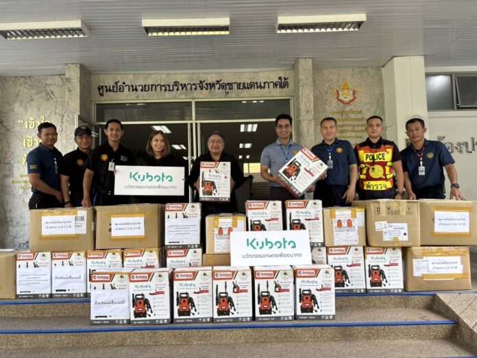 ทั้งนี้ตั้งแต่เกิดมหาอุทกภัยในหลายพื้นที่ภาคใต้ ศอ.บต. เป็นตัวกลางรับมอบสิ่งของบบรเทาทุกข์จากหลายภาคส่วน เพื่อนำไปช่วยเหลือประชาชนที่ได้รับผลกระทบจากเหตุการณ์น้ำท่วม โดยล่าสุด บริษัท สยามคูโบต้า คอร์ปอเรชั่น จำกัด (สำนักงานใหญ่) มอบ เครื่องฉีดน้ำแรงดันสูง เสื้อกันหนาว และเสื้อยืด เพื่อใช้สนับสนุนการลงพื้นที่ช่วยเหลือ, บริษัท มินเซนแมชีนเนอรี่ จำกัด มอบ เครื่องฉีดน้ำแรงดันสูง เพื่อใช้ในภารกิจฟื้นฟูและทำความสะอาดหลังน้ำลด