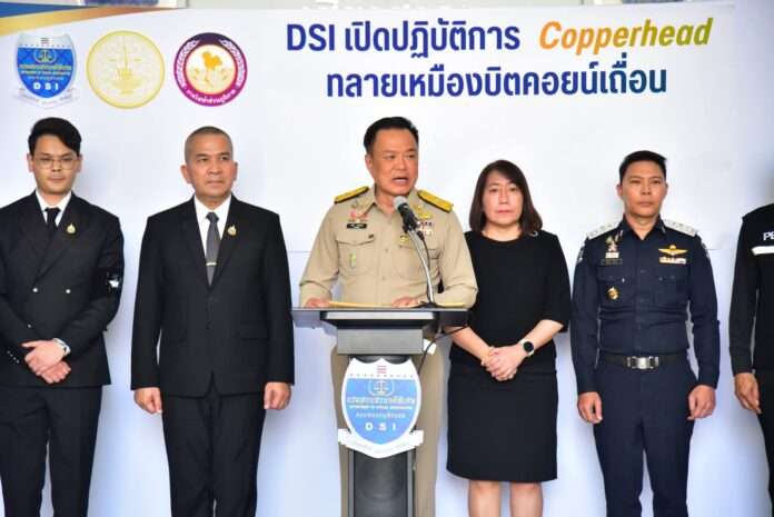 เมื่อวันที่ 3 ธันวาคม 2568 เวลา 16.30 น. ที่กรมสอบสวนคดีพิเศษ (ดีเอสไอ) นายอนุทิน ชาญวีรกูล นายกรัฐมนตรี พร้อมด้วยพล.ต.อ.เพิ่มพูน ชิดชอบ ที่ปรึกษานายกรัฐมนตรี พล.ต.ท. รุทธพล เนาวรัตน์ รัฐมนตรีว่าการกระทรวงยุติธรรม พ.ต.ต.ยุทธนา แพรดำ อธิบดีกรมสอบสอบสวนคดีพิเศษ นายธนะ โชคพระสมบัติ รองผู้ว่าการปฏิบัติการระบบไฟฟ้า การไฟฟ้าส่วนภูมิภาค แถลงปฏิบัติการทลายเหมืองบิตคอยน์เถื่อนภายใต้ชื่อปฏิบัติการ “Operation Copperhead”