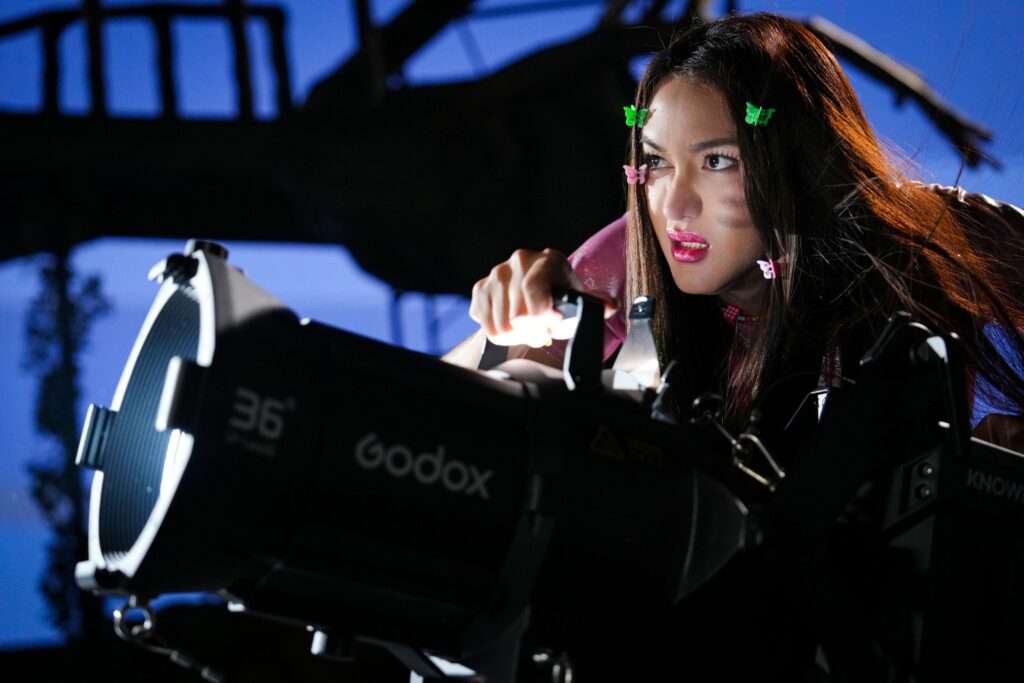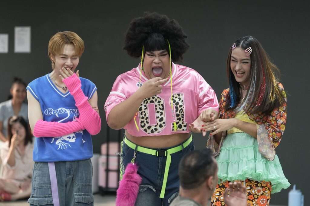 “และในส่วนของความสนุกสนานที่เกิดขึ้นในเรื่อง คือมันจัดเต็มมากๆ โดยเฉพาะตอนพวกเราแก๊งตาคลีทั้ง ‘พิตต้า พี’ (รับบทโดย ปิงปอง – ธงชัย ทองกันทม) และ ‘คอปเตอร์’ (รับบทโดย นุนิว – ชวรินทร์ เพริศพิริยะวงศ์) ต้องเปิดศึกปะฉะดะกับดีว่ารุ่นเก่าอย่าง ‘ปลายฝัน’ (รับบทโดย แจ็คกี้ – ชาเคอลีน มึ้นช์) คือมันสนุกมาก พี่เติ้ล ผู้กำกับ ก็จะปล่อยให้พวกเราได้อิมโพรไวส์คิดคำมาจิกกัดอีกฝ่ายเองแบบแสบแซ่บถึงทรวง แถมยังให้เราได้ด้นสดในหลายๆ ฉาก เช่น ซีนไลลาถูกผีสิงกลางงานแถลงข่าวฯ ที่เห็นกันไปในตัวอย่างหนังแล้ว อันนั้นพี่เติ้ลก็ให้เราได้ลองเล่นได้เต็มที่ เราก็ใส่อินเนอร์แบบไม่มียั้งกลับไปให้ (หัวเราะ) ทำให้บรรยากาศในกองสนุกมาก และมันเป็นเสน่ห์อย่างหนึ่งของหนังเรื่องนี้เลยค่ะ