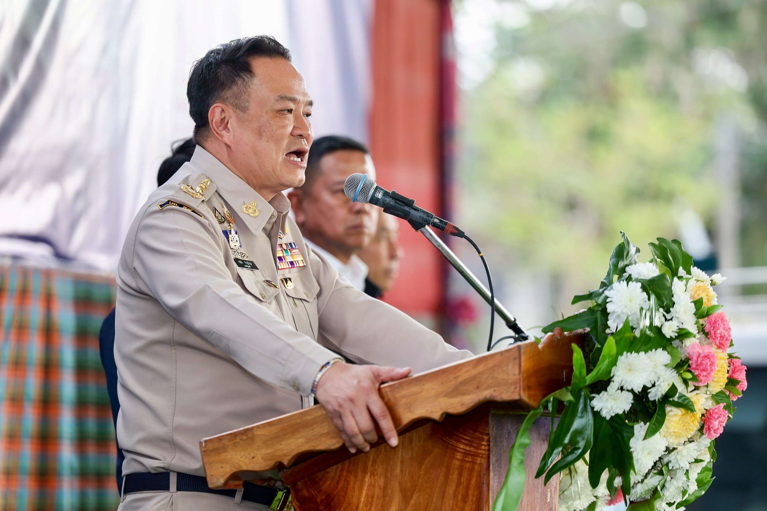 สอง บทบาทของฝ่ายปกครองและกองกำลังภาคประชาชน โดยชี้ว่า ความมั่นคงไม่ได้เป็นภารกิจของทหารฝ่ายเดียว แต่สำหรับประชาชนในชุมชน คนที่คิดถึงเป็นคนแรก คือผู้ใหญ่บ้าน ผู้ช่วยผู้ใหญ่บ้านฝ่ายรักษาความสงบ (ผรส.) และชุดรักษาความปลอดภัยหมู่บ้าน (ชรบ.) ซึ่งถือเป็นกำลังพลภาคประชาชนที่เป็นจุดเชื่อมต่อสำคัญในระบบความมั่นคงของแผ่นดิน ขอขอบคุณทุกฝ่ายที่ปฏิบัติหน้าที่อย่างเข้มแข็งตลอดที่ผ่านมา