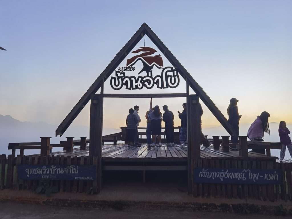 แม่ฮ่องสอน – วันที่ 5 ธันวาคม 2568 บรรยากาศท่องเที่ยวในช่วงวันหยุดยาวเนื่องในวันพ่อแห่งชาติเป็นไปอย่างคึกคัก โดยเฉพาะที่ บ้านจ่าโบ ตำบลปางมะผ้า จังหวัดแม่ฮ่องสอน จุดชมวิวชื่อดังที่นักท่องเที่ยวทั้งชาวไทยและต่างชาติต่างเดินทางมาสัมผัสอากาศหนาวเย็น และชมพระอาทิตย์ขึ้นพร้อม “ทะเลหมอกจ่าโบ” อันเลื่องชื่อ
