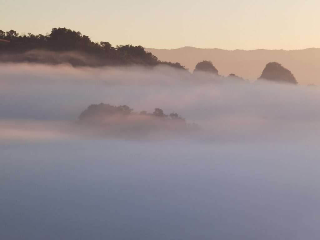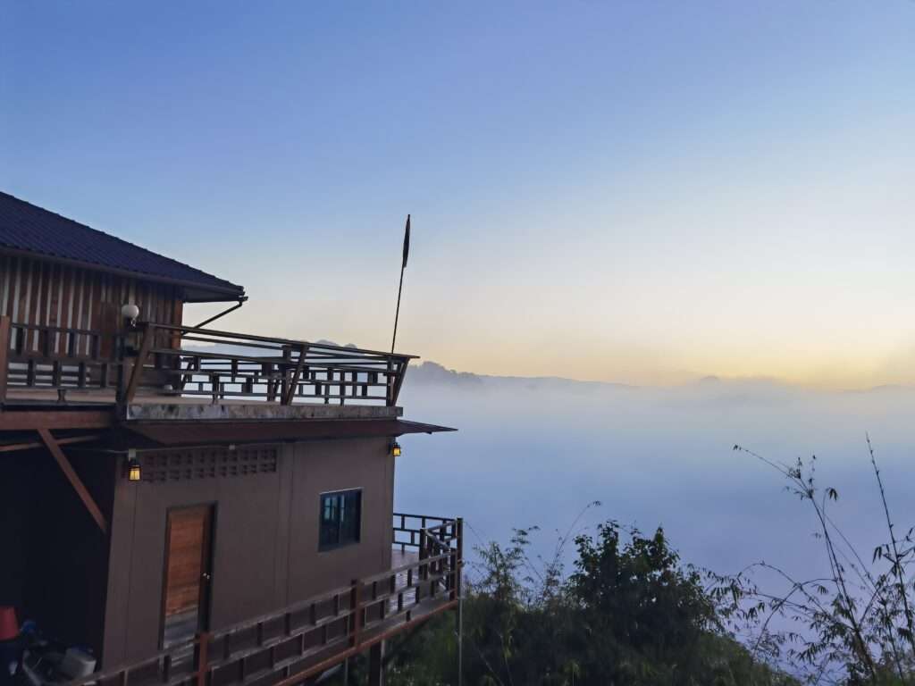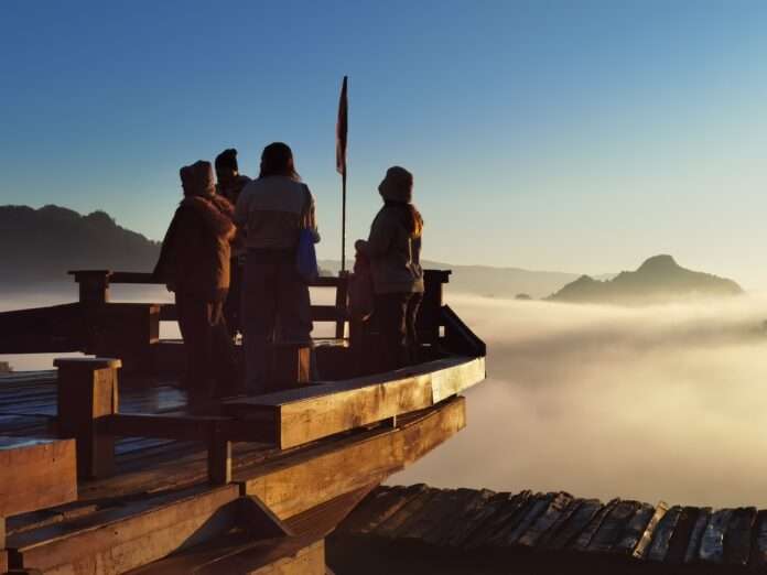 ช่วงเช้าวันนี้อุณหภูมิลดลงต่อเนื่อง 14องศา ทำให้ผืนหมอกหนาแน่นปกคลุมหุบเขาและหมู่บ้าน กลายเป็นภาพงดงามที่นักท่องเที่ยวต่างหยิบกล้องขึ้นมาบันทึกความประทับใจ โดยร้านกาแฟริมผา ร้านก๋วยเตี๋ยวห้อยขาและจุดชมวิวมุมถ่ายภาพ