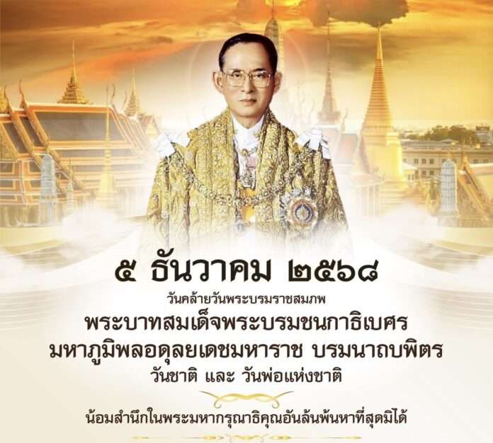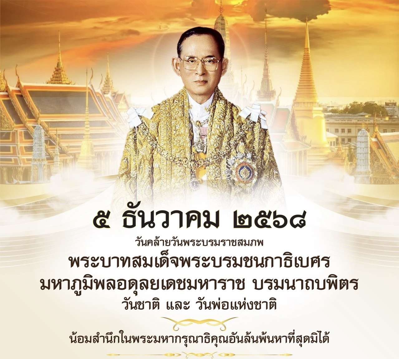 5 ธันวาคม น้อมรำลึกในพระมหากรุณาธิคุณ “ในหลวงรัชกาลที่ 9” เนื่องในวันชาติและวันพ่อแห่งชาติ