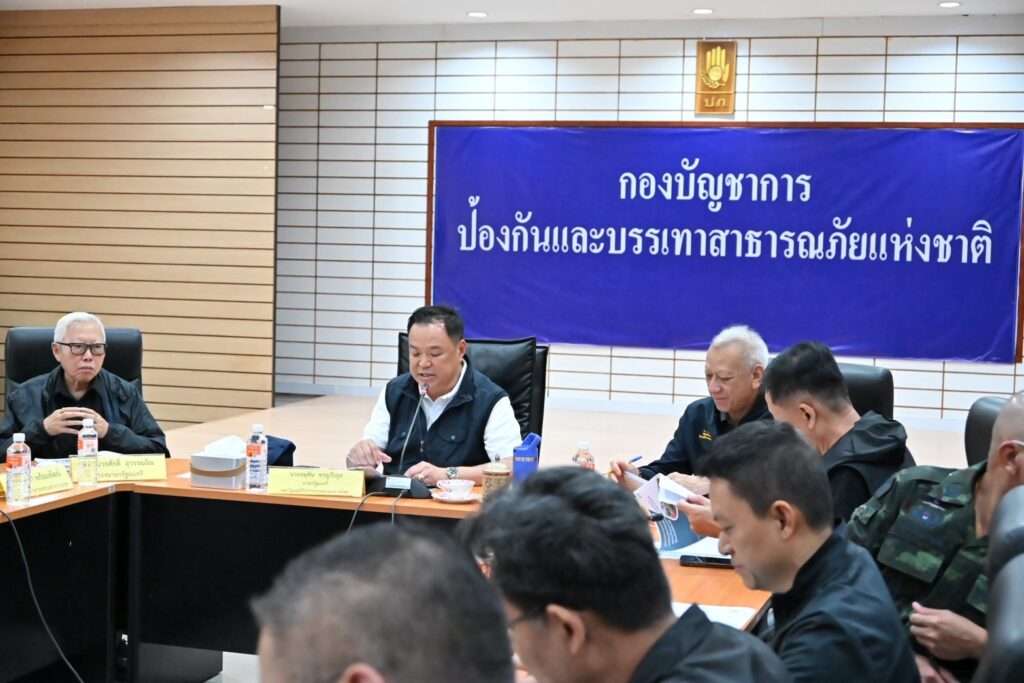 วันที่ 5 ธ.ค. 68 เวลา 09.50 น. ณ ศูนย์ป้องกันและบรรเทาสาธารณภัย เขต 12 สงขลา นายอนุทิน ชาญวีรกูล นายกรัฐมนตรีและรัฐมนตรีว่าการกระทรวงมหาดไทย ในฐานะผู้บัญชาการป้องกันและบรรเทาสาธารณภัยแห่งชาติ ประชุมกองบัญชาการป้องกันและบรรเทาสาธารณภัยแห่งชาติ (บกปภ.ช.) ติดตามสถานการณ์และการให้ความช่วยเหลือผู้ประสบภัยในพื้นที่ภาคใต้ โดยมีนายพิพัฒน์ รัชกิจประการ รองนายกรัฐมนตรีและรัฐมนตรีว่าการกระทรวงคมนาคม นายบวรศักดิ์ อุวรรณโณ รองนายกรัฐมนตรี นายอรรษิษฐ์ สัมพันธรัตน์ ปลัดกระทรวงมหาดไทย นายภาสกร บุญญลักษม์ รองปลัดกระทรวงมหาดไทย นายธีรพัฒน์ คัชมาตย์ อธิบดีกรมป้องกันและบรรเทาสาธารณภัย และหัวหน้าหน่วยงานที่เกี่ยวข้องร่วมประชุม พร้อมผู้แทนจากหน่วยงานการสนับสนุนการปฏิบัติงานในภาวะฉุกเฉิน (สปฉ.) ทั้ง 18 ส่วนงาน ร่วมประชุมผ่านระบบสื่ออิเล็กทรอนิกส์ เผย ประกาศลดระดับการจัดการสาธารณภัย (อุทกภัยในพื้นที่จังหวัดสงขลา) ลดจากระดับ 4 (ร้ายแรงอย่างยิ่ง) ลงเป็นระดับ 3 (ขนาดใหญ่) ใช้กลไกกองบัญชาการป้องกันและบรรเทาสาธารณภัยแห่งชาติ เดินหน้าช่วยเหลือฟื้นฟูพื้นที่เต็มกำลัง ตั้งกองบัญชาการฯ ส่วนหน้า กำกับควบคุมพื้นที่จังหวัดสงขลา