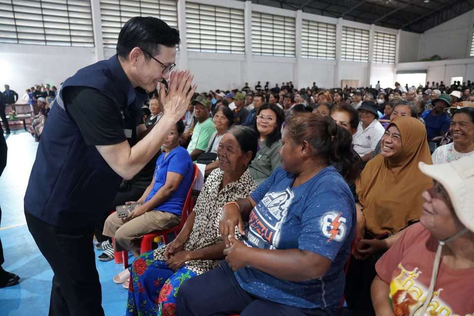 หลังจากเยี่ยมชมบริษัท TTM แล้ว ได้เดินทางไปยังสนามกีฬาประจำอำเภอจะนะ เพื่อพบปะประชาชน โดยได้มอบถุงยังชีพและข้าวกล่อง รวม 1,000 ชุด พร้อมให้กำลังใจแก่ผู้ประสบอุทกภัย