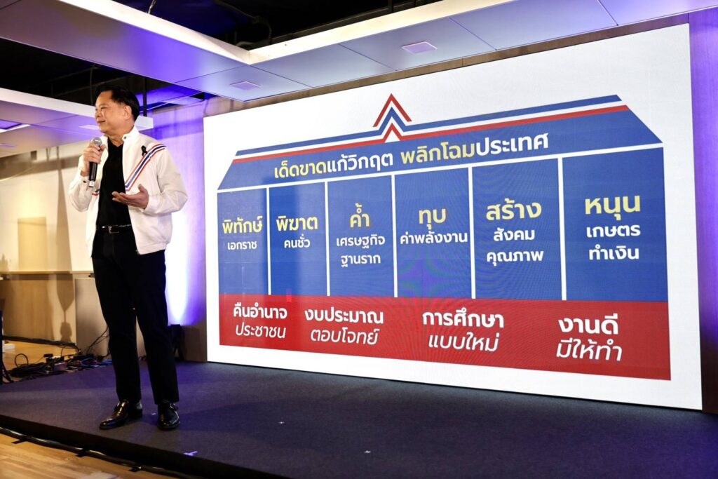 นอกจากการแก้วิกฤตชาติด้วยความเด็ดขาดแล้ว พรรครวมไทยสร้างชาติยังมุ่ง “พลิกโฉมประเทศ” ด้วยนโยบายที่จะสร้างความเปลี่ยนแปลงถึงโครงสร้างฐานราก ประกอบด้วย การคืนอำนาจให้ประชาชน การจัดสรรงบประมาณที่ตอบโจทย์ความต้องการของประชาชน ระบบการศึกษาแบบใหม่ และ การสร้างงานอย่างทั่วถึง