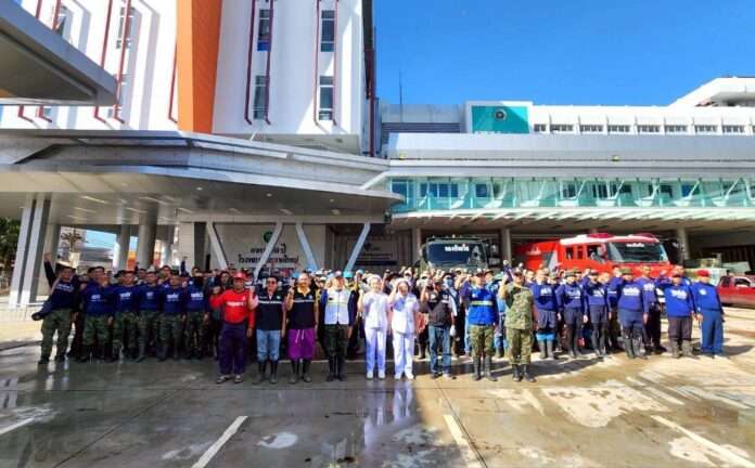 กองทัพเรือร่วมหลายหน่วยงานฟื้นฟูพื้นที่ด้านหน้าโซนแรกของโรงพยาบาลหาดใหญ่แล้วเสร็จ​ หลังอุทกภัยถล่มใต้
