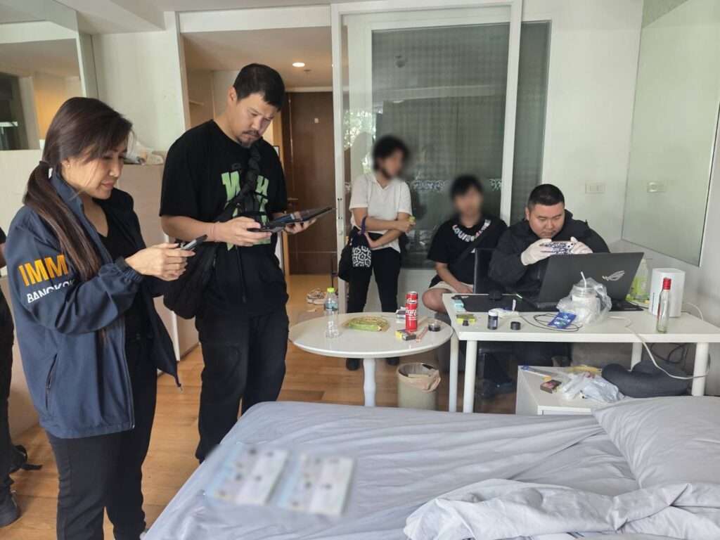 เจ้าหน้าที่พบว่าผู้ต้องหาบางรายมีหมายจับสากล Interpol Red Notice และมีความเชื่อมโยงกับฐานปฏิบัติการในกัมพูชา จับเพิ่มรวม 17 ราย – ตรวจยึดอุปกรณ์กว่า 80 ชิ้นการบุกค้น 2 จุด สามารถจับกุมผู้ต้องหาเพิ่มอีก 13 ราย (เกาหลีใต้ 10 ราย จีน 3 ราย) รวมทั้งหมด 17 ราย พร้อมตรวจยึดคอมพิวเตอร์ โทรศัพท์มือถือ อุปกรณ์ VoIP กว่า 80 รายการ
