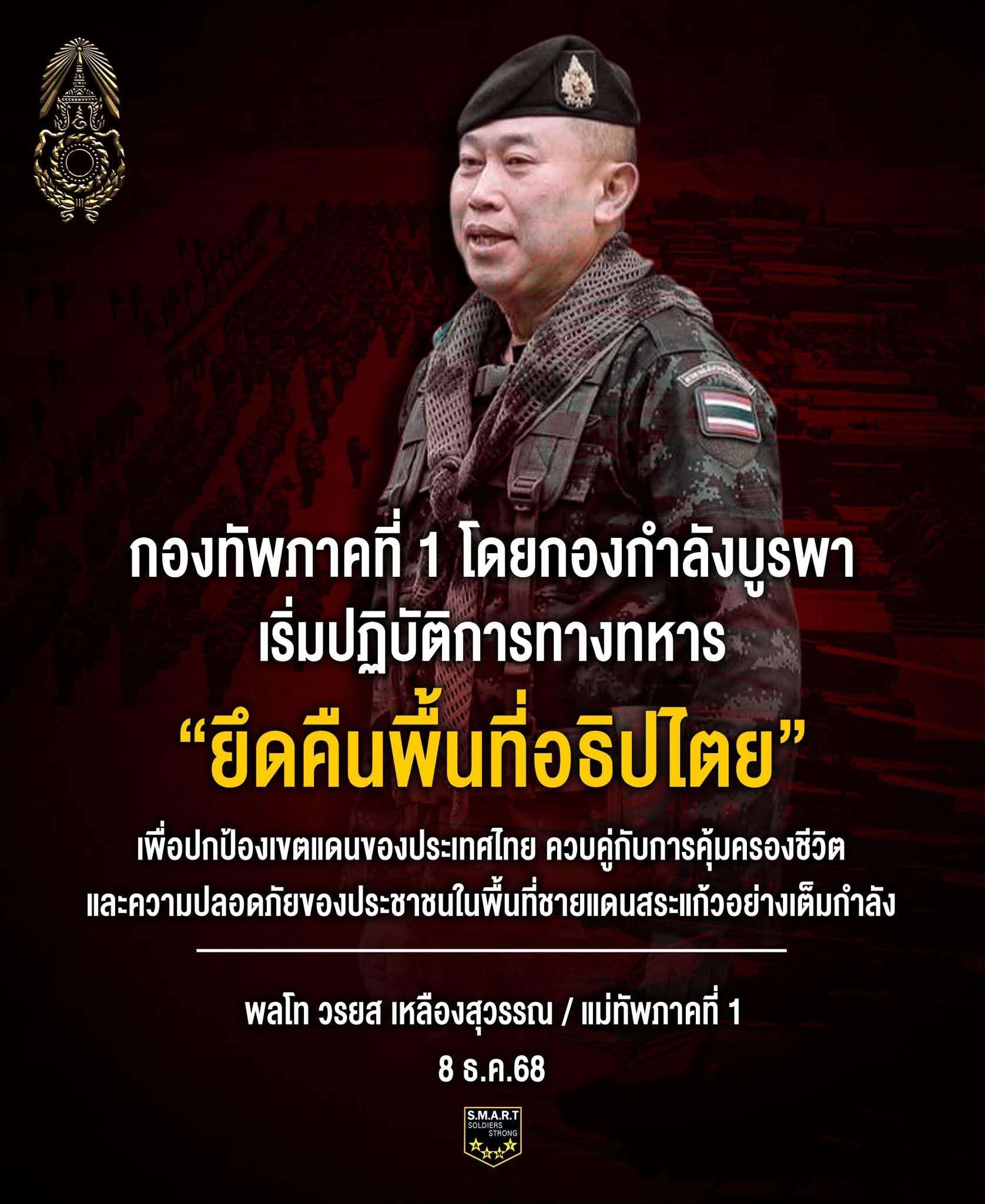 “ยึดคืนพื้นที่อธิปไตย” เพื่อปกป้องเขตแดนของประเทศไทย ควบคู่กับการคุ้มครองชีวิตและความปลอดภัยของประชาชนในพื้นที่ชายแดนสระแก้วอย่างเต็มกำลัง