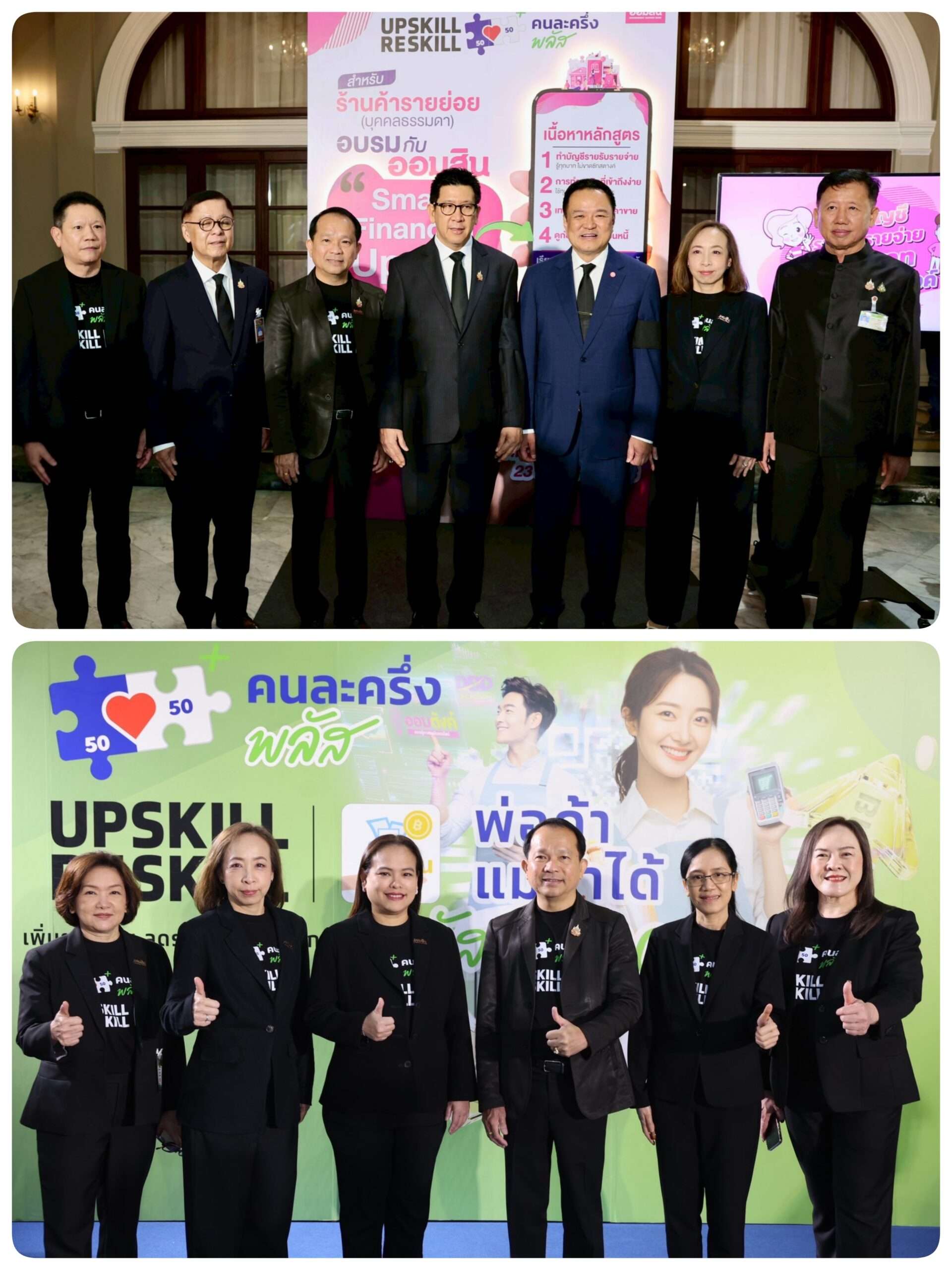 นายอนุทิน ชาญวีรกูล นายกรัฐมนตรี และรัฐมนตรีว่าการกระทรวงมหาดไทย พร้อมด้วย ดร.เอกนิติ นิติทัณฑ์ประภาศ รองนายกรัฐมนตรีและรัฐมนตรีว่าการกระทรวงการคลัง และนายลวรณ แสงสนิท ปลัดกระทรวงการคลัง เยี่ยมชมบูธธนาคารออมสิน ในโครงการพัฒนาความรู้ทักษะ (Upskill) หรือเรียนรู้ทักษะใหม่ (Reskill) สำหรับร้านค้าที่เข้าร่วมโครงการ “คนละครึ่ง พลัส” ซึ่งเป็นการยกระดับศักยภาพร้านค้า กระตุ้นและจูงใจให้ร้านค้าพัฒนาธุรกิจของตนเองในทักษะที่จำเป็น โดยเฉพาะด้านการเงินและด้านดิจิทัล ทั้งนี้ ธนาคารออมสินได้สนับสนุนการเรียนรู้ด้านการเงินแบบออนไลน์ ในหลักสูตร Smart Finance Upskill สำหรับผู้ประกอบการร้านค้าที่เป็นบุคคลธรรมดา เพื่อส่งเสริมความรู้พื้นฐานทางการเงินด้วยเนื้อหาที่เข้าใจง่ายและนำไปใช้ได้จริง โดยมี นายเสกสรร ทวีกสิกรรม และนางสาววชิรา การสุทธิ์ รองผู้อำนวยการธนาคารออมสิน ให้การต้อนรับ ณ ตึกสันติไมตรี ทำเนียบรัฐบาล เมื่อวันที่ 18 พฤศจิกายน 2568