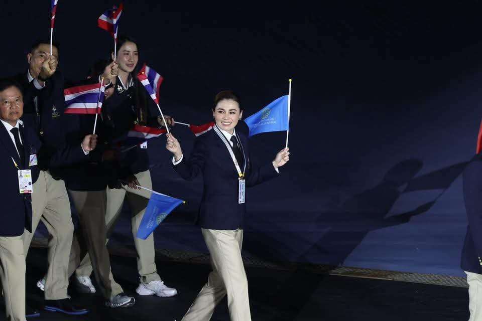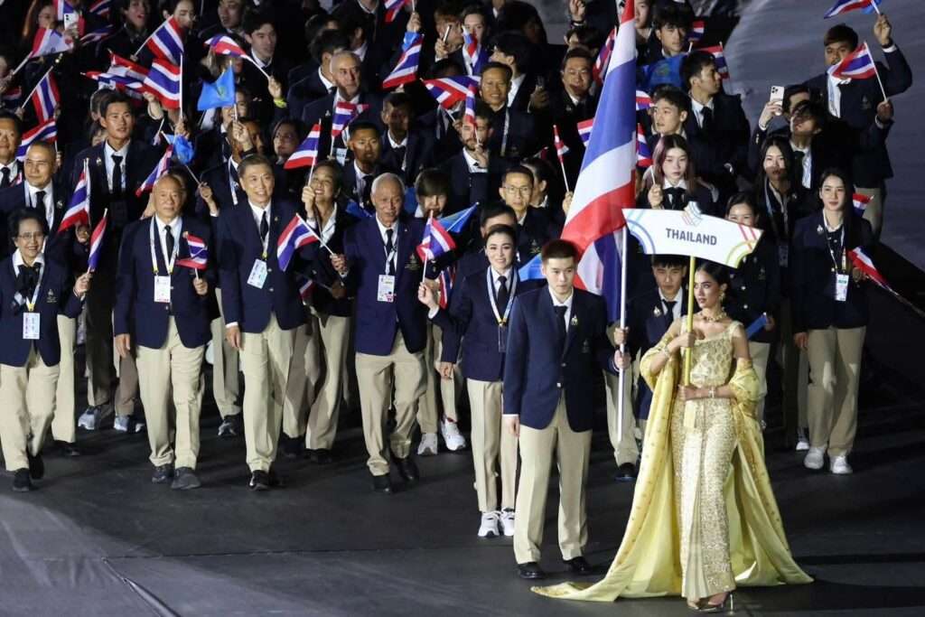 ในโอกาสนี้ สมเด็จพระนางเจ้า ฯ พระบรมราชินี เสด็จพระราชดำเนินไปประทับรถไฟฟ้าพระที่นั่ง เพื่อทรงพระดำเนินร่วมกับนักกีฬาทีมชาติไทยเดินเข้าสู่สนาม จากนั้น ทอดพระเนตรขบวนเชิญธงชาติ และขบวนนักกีฬาที่เข้าร่วมการแข่งขันจำนวน 11 ประเทศ เดินเข้าสู่สนาม เสร็จแล้ว พระราชทานพระบรมราชวโรกาสให้ นายอนุทิน ชาญวีรกุล นายกรัฐมนตรี ประธานคณะกรรมการอำนวยการจัดการแข่งขันกีฬาซีเกมส์ ครั้งที่ 33 กราบบังคมทูลรายงานการจัดการแข่งขันกีฬาซีเกมส์ ครั้งที่ 33 พุทธศักราช 2568