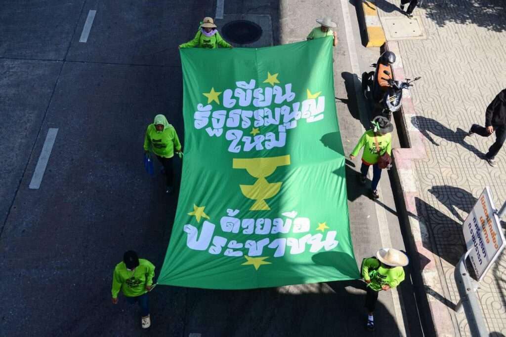 เครือข่ายภาคประชาชน นำโดย คณะกรรมการประสานงานองค์กรพัฒนาเอกชน หรือ กป.อพช. เดินเท้าออกจากรัฐสภาเพื่อมุ่งหน้าไปยังอนุสาวรีย์ประชาธิปไตย หลังได้ยื่นข้อเรียกร้อง 3 ข้อ คือ 1) ยกเลิกรัฐธรรมนูญ 2560 2) เขียนรัฐธรรมนูญใหม่ทั้งฉบับ 3) ผู้ร่างรัฐธรรมนูญต้องมาจากการเลือกตั้ง 100% ให้กับสมาชิกคณะกรรมาธิการพัฒนาการเมือง การมีส่วนร่วมของประชาชน สิทธิมนุษยชน สิทธิ เสรีภาพ และการคุ้มครองผู้บริโภค วุฒิสภา โดยมีตัวแทนสมาชิกสภาผู้แทนราษฎร หรือ สส. และสมาชิกวุฒิสภา หรือ สว. เป็นผู้รับหนังสือ ซึ่งตลอดเส้นทางพบมีเจ้าหน้าที่ตำรวจคอยอำนวยความสะดวกเพื่อไม่ให้ขบวนกระทบกับผู้ใช้รถใช้ถนนบริเวณเส้นทางถนนทหาร พระราม 5 และราชดำเนิน