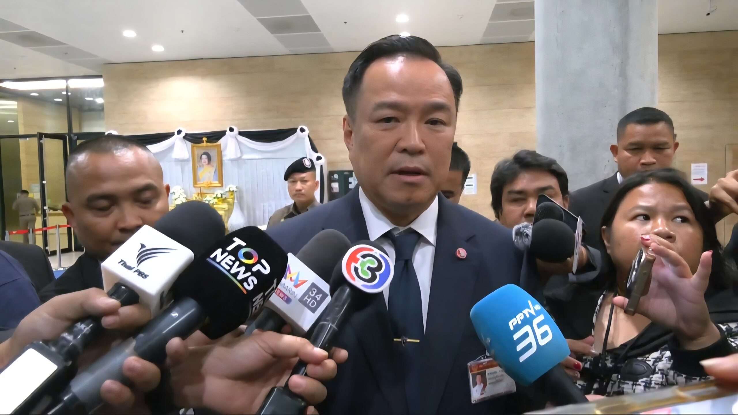 วันที 10 ธ.ค. 2568 ที่อาคารรัฐสภา นายอนุทิน ชาญวีรกูล นายกรัฐมนตรีและรัฐมนตรีว่าการกระทรวงมหาดไทย ให้สัมภาษณ์ถึงกรณีที่นายโดนัลล์ ทรัมป์ ประธานาธิบดีสหรัฐอเมริกา ประกาศระหว่างการปราศรัยว่าจะโทรประสานให้ระหว่างประเทศไทยและกัมพูชาเจรจาหยุดยิง ว่า ขณะนี้ยังไม่ได้รับการประสาน ปกติเวลาการหารือทางโทรศัพท์ผู้นำ จะต้องมีการนัดหมายกันก่อน มีช่องทางอยู่