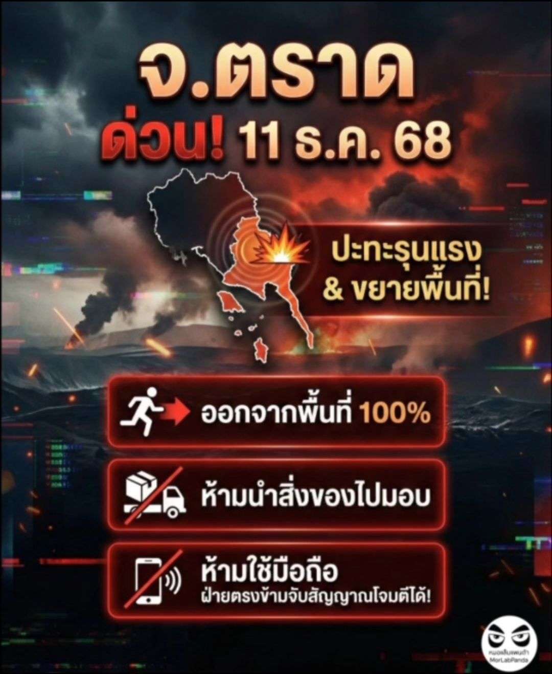 เช้าวันที่ 11 ธ.ค. 2568 สถานีวิทยุกระจายเสียงแห่งประเทศไทย จังหวัดตราด (สวท.ตราด) รายงานว่า หน่วยงานฝ่ายความมั่นคงได้ขอความร่วมมือให้ประชาชนออกจากพื้นที่เสี่ยงบริเวณชายแดน 100% เนื่องจากคาดว่าจะมีการปะทะที่รุนแรงและขยายแนวรบเพิ่ม