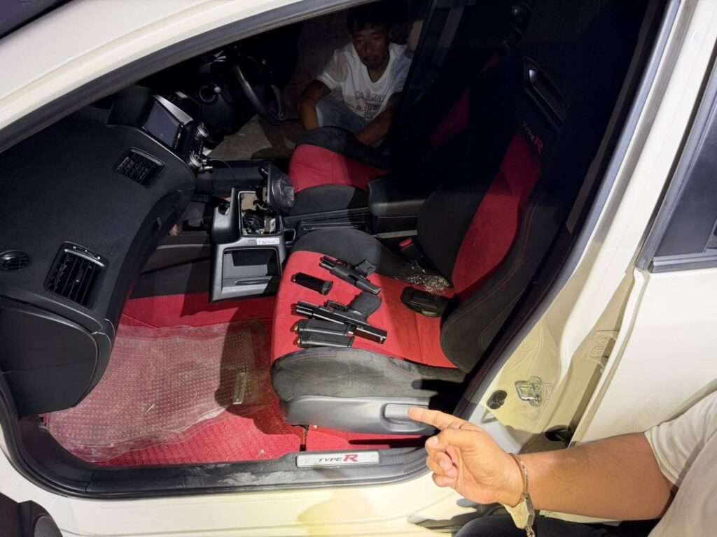 สืบเนื่องจากเมื่อเวลาประมาณ 22.00 น. ( 10 ธ.ค.) ขณะที่เจ้าหน้าที่ตำรวจชุดจับกุมออกตรวจพื้นที่รับผิดชอบ เมื่อมาถึงบริเวณถนนสุขาภิบาล5 พบชายฉกรรจ์ 2 คน ขับรถสวนทางกันโดยคนขับแสดงท่าทีมีพิรุจ คาดว่าน่าจะมีสิ่งของผิดกฎหมายซุกซ่อนอยู่ จึงได้กลับรถขับติดตาม และเรียกให้หยุดรถเพื่อขอทำการตรวจค้น จากการตรวจค้นเบื้องต้นไม่พบสิ่งของผิดกฎหมาย พบเพียงใบอนุญาตให้มีและใช้อาวุธปืน(ใบ ป.4) จึงได้สอบถามเพิ่มเติมแต่อ้างว่ามีแต่ใบ ป.4 และไม่ได้นำปืนติดตัวมาด้วย แต่เจ้าหน้าที่พบทั้งสองคนมีอาการลุกลี้ลุกลน จึงเขิญตัวมายังที่สน.สายไหม และทำการตรวจค้นโดยละเอียดจนพบอาวุธปืน และเครื่องกระสุน ของกลางซุกซ่อนอยู่ภายในช่องคอลโซลเกียร์จำนวน 2 กระบอก โดยนายชยพัทธ์ ยอมรับว่า อาวุธปืนพกสั้นกึ่งอัตโนมัติ ยี่ห้อ sig sauer รุ่น P365 สีดำ ขนาด 9 มม. และ เครื่องกระสุน ขนาด 9 มม. จำนวน 6 นัด เป็นของตนเอง ส่วน นายอัษฎายุธ ยอมรับว่า อาวุธปืนพกสั้นกึ่งอัตโนมัติ ยี่ห้อ GLOCK รุ่น Glock21 สีดำ ขนาด .45 ACP และ เครื่องกระสุน ขนาด .45 ACP จำนวน 16 นัด เป็นของตนเอง โดยก่อนหน้าได้เดินทางไปเที่ยวจังหวัดนครนายก จึงได้นำอาวุธปืนด้วยเพื่อป้องกันตัวและกำลังจะกลับที่พักแต่มาเจอเจ้าหน้าที่ตำรวจเรียกตรวจเสียก่อน