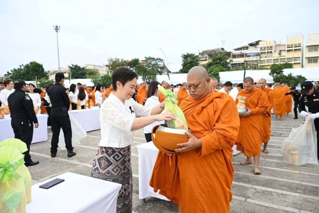 จากนั้น ประธานในพิธี พร้อมด้วยคณะผู้บริหารกรุงเทพมหานคร หัวหน้าหน่วยงาน ข้าราชการและบุคลากรของกรุงเทพมหานคร และผู้ร่วมพิธี ตักบาตรพระสงฆ์และสามเณร จำนวน 154 รูป เพื่อความเป็นสิริมงคลสืบไป