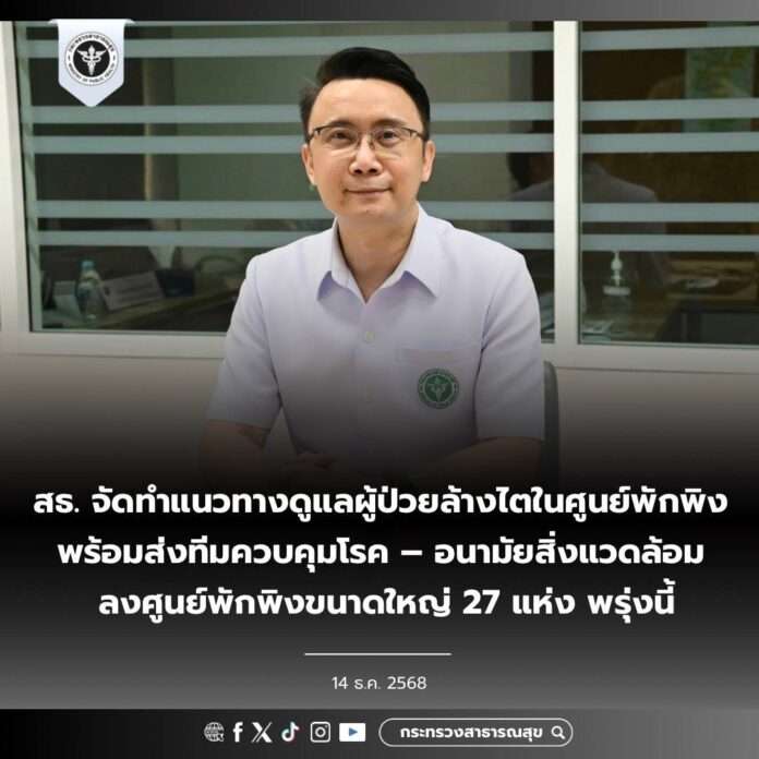 นพ.เอกชัยกล่าวต่อว่า ศูนย์พักพิงมีการเปิดเพิ่มขึ้นรวม 995 จุด มีผู้เข้าพักรวม 258,626 คน เป็นกลุ่มเปราะบาง 69,380 คน ส่วนใหญ่เป็นผู้สูงอายุและเด็กเล็ก 0 – 5 ปี มีการส่งต่อผู้พักพิงไปรักษาในโรงพยาบาลสะสม 546 ราย พร้อมดูแลเฝ้าระวังและควบคุมโรคในศูนย์พักพิง ทั้งโรคติดเชื้อระบบทางเดินหายใจ โรคติดเชื้อระบบทางเดินอาหาร โรคติดเชื้อนำโดยแมลง การจัดการขยะ สุขาภิบาลอาหารและน้ำ และอนามัยสิ่งแวดล้อม นอกจากนี้ ได้เตรียมบุคลากรทีม SRRT และ SEhRT รวม 52 ทีม ลงพื้นที่วันที่ 15 ธันวาคม นี้ เพื่อสนับสนุนการดูแลศูนย์พักพิงขนาดใหญ่ที่รองรับผู้พักพิงมากกว่า 1,000 คนขึ้นไป