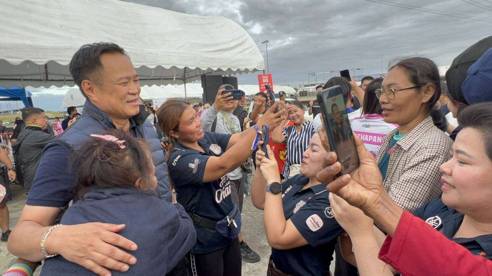 ที่สนามช้างอารีน่า จังหวัดบุรีรัมย์, 14 ธ.ค. – นายอนุทิน ชาญวีรกูล นายกรัฐมนตรี และรมว.มหาดไทย พร้อมด้วย พล.ท.อดุลย์ บุญธรรมเจริญ รมช.กลาโหม เดินทางไปเยี่ยม และให้กำลังใจประชาชน รวมถึงเจ้าหน้าที่ผู้ปฏิบัติงาน โดยได้ทักทาย และสวมกอดประชาชนที่มารอต้อนรับอย่างเป็นกันเอง ก่อนเดินไปยังโซนโรงครัวของศูนย์อพยพ ร่วมลงมือทำหอยทอดทะเลแจกจ่ายให้กับผู้อพยพ พร้อมตำส้มตำปลาร้าให้ประชาชนได้รับประทาน สร้างบรรยากาศผ่อนคลายและรอยยิ้มภายในศูนย์อพยพ