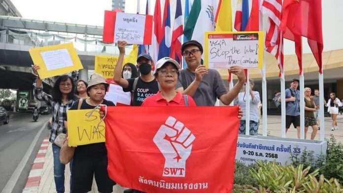 วันที่ 13 ธ.ค. 68 เมื่อเวลา 15.00 น. กลุ่มสังคมนิยมแรงงาน กลุ่มสังคมนิยมแรงงาน รวมตัวที่หอศิลปวัฒนธรรมกรุงเทพมหานคร (BACC) เรียกร้องสันติภาพ หยุดยิง หยุดสงครามชายแดน “ไทย-กัมพูชา” ระบุ สงครามเป็นประโยชน์ต่อกองทัพ 2 ประเทศ และไม่ได้เป็นประโยชน์ต่อประชาชน สมาชิกสังคมนิยมแรงงาน มองว่า ประชาชนบริเวณชายแดนไทย-กัมพูชา 800 กม. ใช้ชีวิตเรื่อยกันมาโดยตลอด อาจจะมีข้อพิพาท หรือการทะเลาะเบาะแว้ง แต่ว่าไม่เคยเกิดการปะทะลุกลามเรื่อยมาขนาดนี้ “รัฐบาลรักษาการอย่างอนุทิน ต้องเอาสิ่งที่เกิดขึ้นในชายแดนขึ้นสู่โต๊ะเจรจา จะต้องไม่มีศพของทหารทั้ง 2 ฝ่าย”