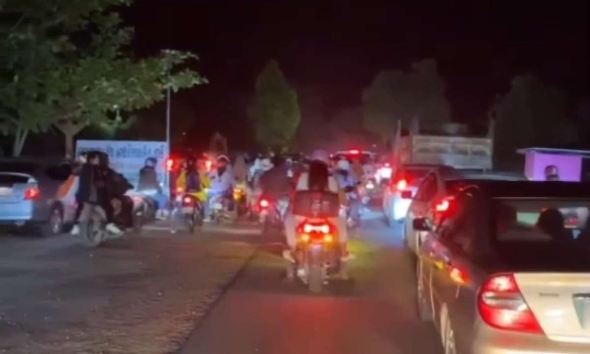 และทันทีที่ชาวบ้านขี่รถออกไปก็มีเสียงปืนเล็กดังสนั่นหวั่นไหวรัวหลายสิบนัด โดยเสียงดังมาจากฝั่งบ้านชำราก และผู้สื่อข่าวทราบภายหลังว่าเจ้าหน้าที่ตรวจพบโดรนบินว่อนเต็มพื้นที่ ทั้งบ้านตำบลตะกาง – ตำบลชำราก พร้อมเชื่อว่ากัมพูชาพยายามหาพิกัดทางการทหารของไทย ด้านทหารไทยจึงยิงปืนเล็กสวนกลับเพื่อสกัดโดรนและตอบโต้โดรนที่บินรุกล้ำฝั่งไทย จากนั้นมีเสียงดังตู้ม ทราบภายหลังว่าเป็นปืนใหญ่โจมตีฐานที่มั่นของกัมพูชา เสียงปืนเล็กดังอีกชุด ทราบว่าทหารปฏิบัติการตอบโต้โดรนกัมพูชา ขณะที่ชาวบ้านในพื้นที่อพยพกันวุ่น