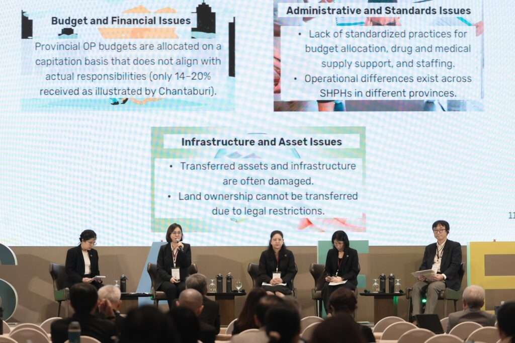นางสาวภัทรพร เล้าวงค์ ผู้เชี่ยวชาญด้านการลงทุนพัฒนาสังคม สภาพัฒนาการเศรษฐกิจและสังคมแห่งชาติ กล่าวในระหว่างการเสวนาว่า แม้ไทยมีหลักประกันสุขภาพถ้วนหน้าที่ครอบคลุมประชากรมากถึง 99.73% แต่ยังมีประชากรอีก 4 ล้านคนที่เข้าไม่ถึงสิทธิ โดยเฉพาะกลุ่มคนในพื้นที่ห่างไกลและมีรายได้น้อย ทั้งยังพบการกระจายตัวของทรัพยากรและบุคลากรที่ไม่เป็นธรรมระหว่างพื้นที่