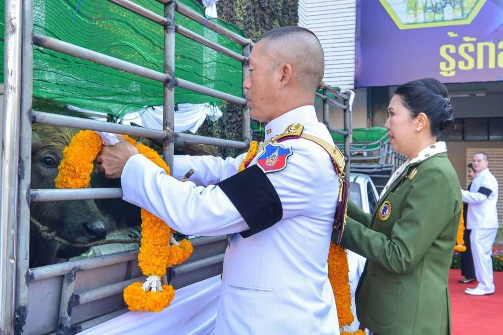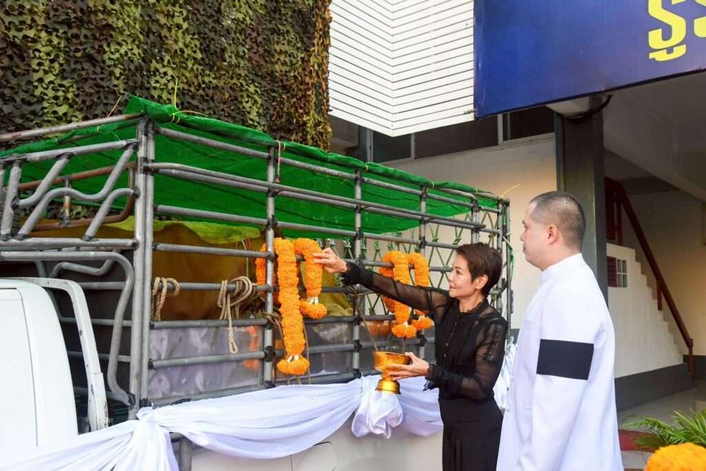 ลพบุรี, วันที่ 15 ธ.ค. – มูลนิธิพุทธภูมิธรรม โดย นายวิจักษณ์ สองจันทร์ ประธานมูลนิธิฯ และ น.ส.สาธิมา ลาชโรจน์ ผอ.ศูนย์อำนวยการ เป็นตัวแทนผู้มีจิตศรัทธา ไถ่ชีวิตโค-กระบือ รวม 5 ตัว เป็นโคเพศเมีย 2 ตัว ลูกโค 1 ตัว และกระบือเพศเมีย 2 ตัว เพื่อเฉลิมพระเกียรติ และถวายเป็นพระราชกุศล แด่พระบาทสมเด็จพระบรมชนกาธิเบศร มหาภูมิพลอดุลเดชมหาราช บรมนาถบพิตร (รัชกาลที่ 9) โดยส่งมอบให้หน่วยในพื้นที่ จ.ลพบุรี ดำเนินการอภิบาลดูแล “ตลอดอายุขัย” (ห้ามนำไปใช้งานส่วนตัว หรือจำหน่าย) พร้อมสร้างคอก โค-กระบือ ให้