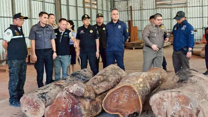 วันนี้ (วันจันทร์ที่ 15 ธันวาคม 2568) เวลา 14.00 น. ณ โกดังบริษัท เอสซี เจริญทรัพย์ 789 จำกัด จังหวัดหนองคาย นายศรัณย์ศักดิ์ ศรีเครือเนตร ผู้ว่าราชการจังหวัดหนองคาย ร้อยตำรวจเอก วิษณุ ฉิมตระกูล รองอธิบดีกรมสอบสวนคดีพิเศษ นายอังศุเกติ์ วิสุทธิ์วัฒนศักดิ์ ผู้อำนวยการกองกิจการอำนวยความยุติธรรม นายวีระ ขุนไชยรักษ์ รองอธิบดีกรมอุทยานแห่งชาติ สัตว์ป่าและพันธุ์พืช นายพัฒน์พงษ์ สมิตติพัฒน์ รองอธิบดีกรมป่าไม้ ได้ร่วมกันแถลงข่าวกรณี DSI ร่วมกับกรมอุทยานฯ ยึดไม้ลักลอบตัดจากเขตอุทยานแห่งชาติในโกดังโรงไม้นายทุนจีน จังหวัดหนองคาย มูลค่ากว่า 300 ล้านบาท