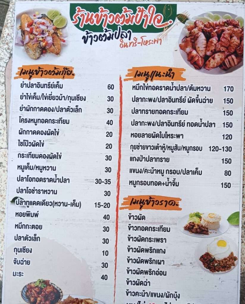 เมนูแรก ลุงสั่งข้าวต้มปลาอินทรีย์ -โหระพา มาเป็นอันดับแรก ราคาชามละ 25 บาท ข้าวหุงเมล็ดบานๆ กะหล่ำปลีหรือถั่วงอกลวก ราดด้วยน้ำซุปร้อนๆ ท็อปปิ้งเนื้อปลาและลูกชิ้นปลาอินทรีย์ โรยหน้าด้วยใบโหระพา น้ำซุปใสๆเชงๆ กินพร้อมกับ กะหล่ำปลีลวกและใบโหระพา รสชาติอร่อยแปลก จะปรุงเครื่องปรุงกินแบบข้าวต้มเครื่องก็ได้ หรือจะกินกับกับข้าวก็ดี ที่สำคัญ ราคาถูกมาก