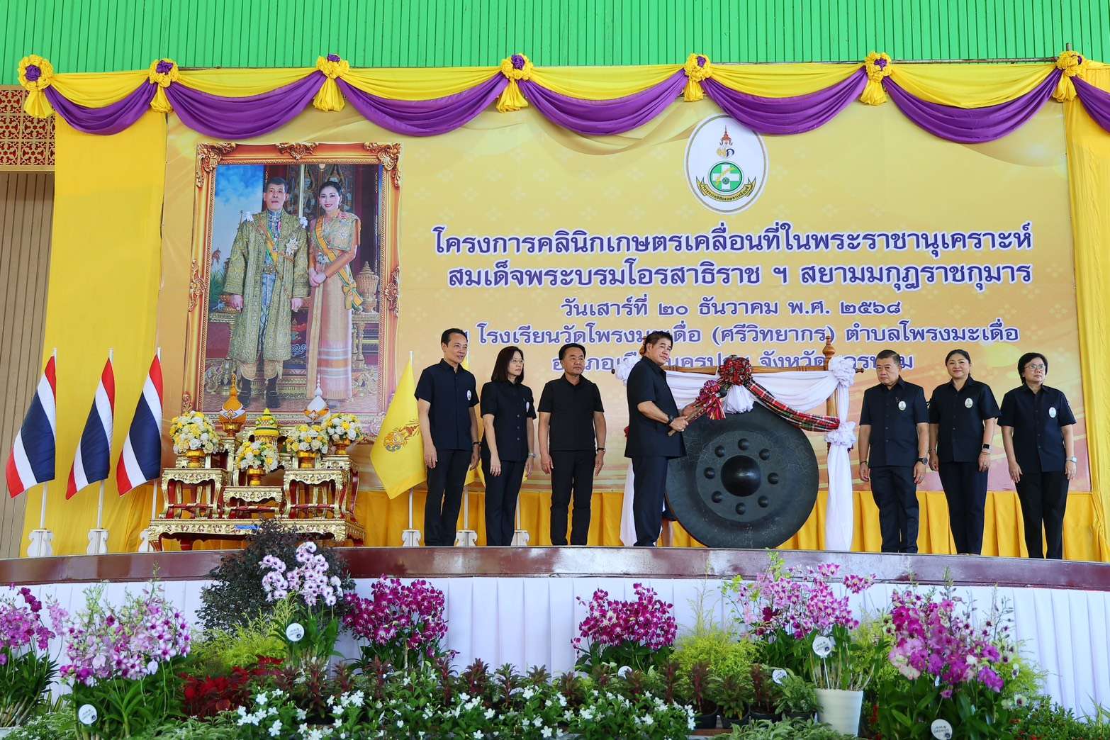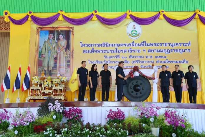นครปฐม, วันที่ 20 ธันวาคม – ร.อ.ธรรมนัส พรหมเผ่า รองนายกรัฐมนตรี และรัฐมนตรีว่าการกระทรวงเกษตรและสหกรณ์ (รมว.กษ.) พร้อมด้วย จ่าเอกยศสิงห์ เหลี่ยมเลิศ รัฐมนตรีช่วยว่าการกระทรวงอุตสาหกรรม (รมช.อก.) ร่วมเปิดงาน โครงการคลินิกเกษตรเคลื่อนที่ ในพระราชานุเคราะห์สมเด็จพระบรมโอรสาธิราชฯ สยามมกุฎราชกุมาร ณ โรงเรียนวัดโพรงมะเดื่อ (ศรีวิทยากร) โดยมี พ.ท.สินธพ แก้วพิจิตร อดีต สส.นครปฐม, นายพีรวัส สมวงศ์ เลขานุการ รมช.อก., นายวิณะโรจน์ ทรัพย์ส่งสุข ปลัด กษ., นางอัญชลี สุวจิตตานนท์ อธิบดีกรมหม่อนไหม รักษาราชการแทนอธิบดีกรมส่งเสริมการเกษตร และ นางสาวอโรชา นันทมนตรี ผู้ว่าราชการจังหวัดนครปฐม เข้าร่วม