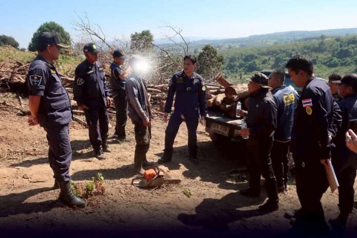 ชัยภูมิ, วันที่ 20 ธ.ค. – ผู้สื่อข่าวรายงานว่า กรมป่าไม้ได้รับแจ้งเบาะแสจากพลเมืองดีว่ามีกลุ่มทุนเข้ามา ก่อสร้างที่พักสำหรับนักท่องเที่ยวภายในเขตป่าสงวนแห่งชาติ ป่าภูแลนคาด้านทิศเหนือ ท้องที่หมู่ที่ 1 ตำบลซับสีทอง อำเภอเมืองชัยภูมิ จังหวัดชัยภูมิ นายนิกร ศิรโรจนานนท์ อธิบดีกรมป่าไม้ และนายโกสิทธิ์ นิลรัตน์ ผู้อำนวยการสำนักป้องกันรักษาป่าและควบคุมไฟป่า ได้สั่งการให้นายชาญชัย กิจศักดาภาพ หัวหน้าหน่วยเฉพาะกิจปราบปรามพิเศษ (พยัคฆ์ไพร) สนธิกำลังกับเจ้าหน้าที่ศูนย์ป้องกันและปราบปรามที่ 2 (ภาคตะวันออกเฉียงเหนือ) เจ้าหน้าที่สำนักจัดการทรัพยากรป่าไม้ที่ 8 (นครราชสีมา) โดยส่วนป้องกันรักษาป่าและควบคุมไฟป่า และหน่วยป้องกันรักษาป่าที่ ชย.2 (ภูแลนคา) เจ้าหน้าที่ชุดปฏิบัติการพิเศษป่าไม้ สจป.8 (นครราชสีมา) และกำลังตำรวจกองกำกับการ 3 บก.ปทส. เข้าตรวจสอบ
