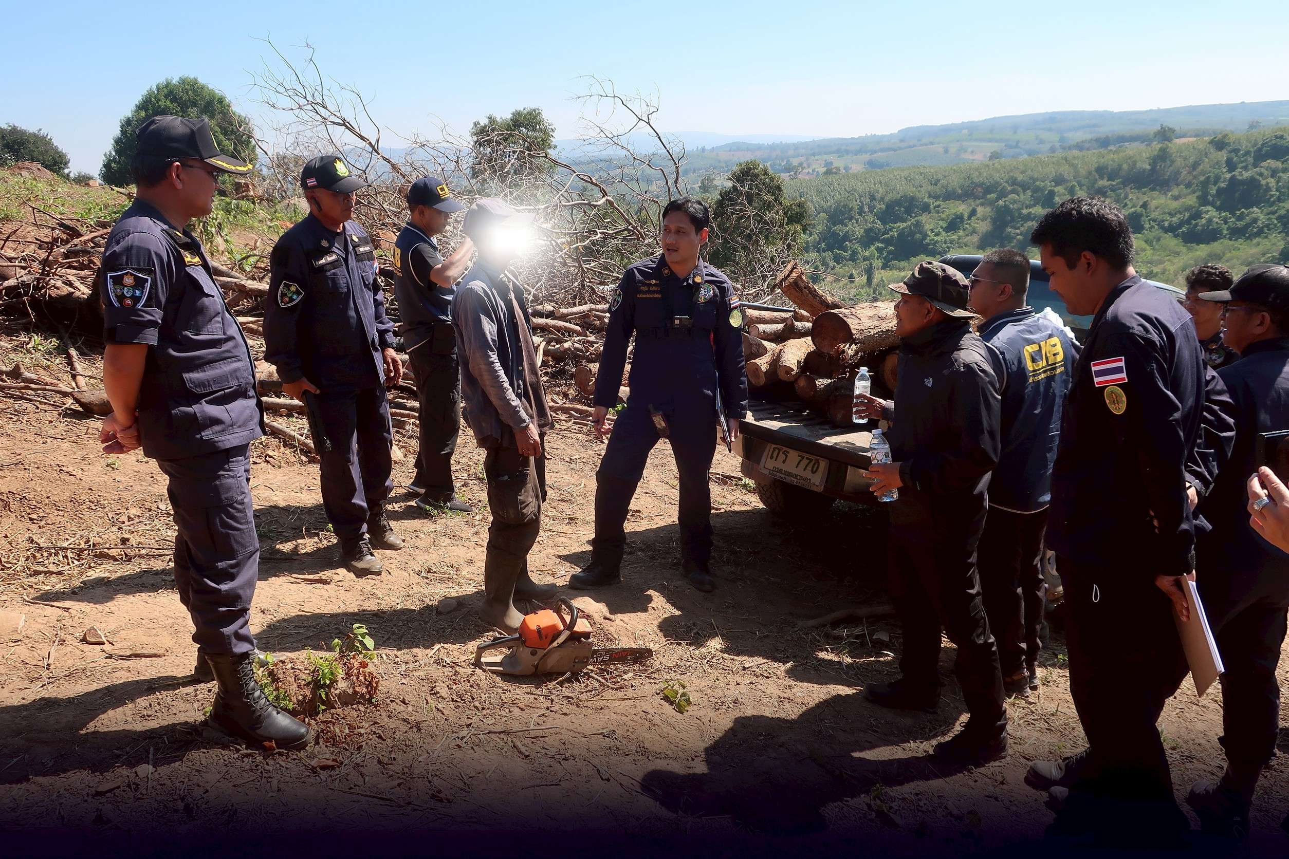 เมื่อมาถึงจุดเป้าหมาย เจ้าหน้าที่พบชายคนหนึ่งกำลังดำเนินการเลื่อยไม้ จึงได้นำกำลังเข้าควบคุมตัว ซึ่งอ้างว่าเป็นลูกจ้างของสถานประกอบกิจการที่พักสำหรับนักท่องเที่ยว โดยเจ้าของได้สั่งให้มาตัดเพื่อเคลียร์พื้นที่ จากการตรวจสอบพบเป็นไม้หวงห้าม ประเภทไม้พะยูง ประดู่ นนทรี และคอแลน 22 ท่อน และยังพบว่ามีตอไม้หวงห้ามจำนวนมากกระจายเต็มพื้นที่ พร้อมร่องรอยการเผาตอไม้ และเศษกิ่งไม้ เจ้าหน้าที่จึงได้ตรวจยึดไม้ท่อนหวงห้ามทั้งหมด พร้อมเลื่อยโซ่ยนต์ไว้เป็นของกลาง และนำตัวไปจัดทำบันทึกที่หน่วยป้องกันรักษาป่าที่ ชย.2 (ภูแลนคา) จากนั้นเจ้าหน้าที่ได้เข้าตรวจสอบสถานประกอบกิจการที่พักสำหรับนักท่องเที่ยว ซึ่งจากการสืบสวนพบว่ามีหญิงคนหนึ่งเป็นเจ้าของ โดยพบหญิงคนหนึ่งอ้างเป็นลูกจ้าง ผู้ดูแลพื้นที่ จึงได้ขอให้โทรประสานเจ้าของซึ่งอยู่ต่างพื้นที่เพื่อให้ข้อมูล และแจ้งการเข้าตรวจสอบ
