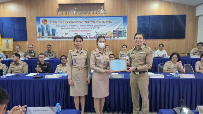 โดยมีนายกนต์ธร ศรีชุมจันทร์ ปลัดอำเภอ หัวหน้ากลุ่มงานบริหารงานปกครอง รักษาราชการแทนนายอำเภอปากเกร็ด เป็นประธานในพิธีรับมอบใบประกาศนียบัตร พร้อมด้วยกำนัน สารวัตรกำนัน ผู้ใหญ่บ้าน ผู้ช่วยผู้ใหญ่บ้าน แพทย์ประจำตำบล และหัวหน้าส่วนราชการในพื้นที่ เข้าร่วมพิธีอย่างพร้อมเพรียง