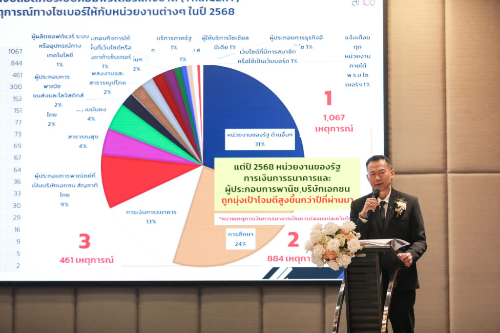 สกมช. เปิดตัวแพลตฟอร์มกลาง Sectoral CERT แบบรวมศูนย์ ยกระดับการรับมือภัยคุกคามไซเบอร์ของประเทศสกมช. เดินหน้าพลิกโฉมการรับมือภัยไซเบอร์ของประเทศ เชื่อมโยงข้อมูลจากหลายหน่วยงาน เพิ่มความรวดเร็วในการตรวจจับและตอบสนองภัยคุกคาม พร้อมยกระดับมาตรฐานไซเบอร์ระดับชาติ