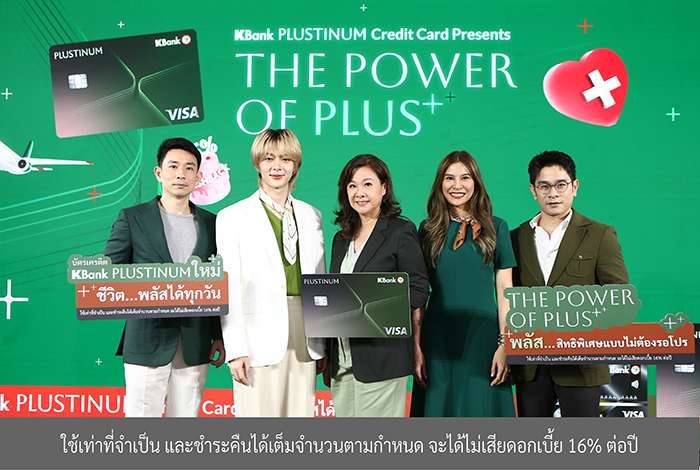 ทั้งนี้ นับตั้งแต่เปิดตัวโฉมใหม่ของบัตรเครดิต KBank PLUSTINUM ยังคงได้รับกระแสตอบรับที่ดีอย่างต่อเนื่อง เห็นได้จากยอดสมัครบัตรที่เพิ่มขึ้นอย่างชัดเจน และกระแสตอบรับบนโซเชียลมีเดีย ซึ่งสะท้อนถึงการออกแบบสิทธิประโยชน์ที่ “พลัส” มาให้ลูกค้าผู้ถือบัตร สอดคล้องกับทุกไลฟ์สไตล์ในการใช้ชีวิตยุคปัจจุบันและแม้ว่างานจะจบไปแล้ว แต่ลูกค้าและผู้ที่สนใจยังสามารถพลัสกันได้อย่างต่อเนื่อง กับสิทธิพิเศษจากบัตรเครดิต KBank PLUSTINUM ให้ “ชีวิต…พลัสได้ทุกวัน” ตั้งแต่วันที่ 7 ตุลาคม 2568 – 31 ธันวาคม 2569