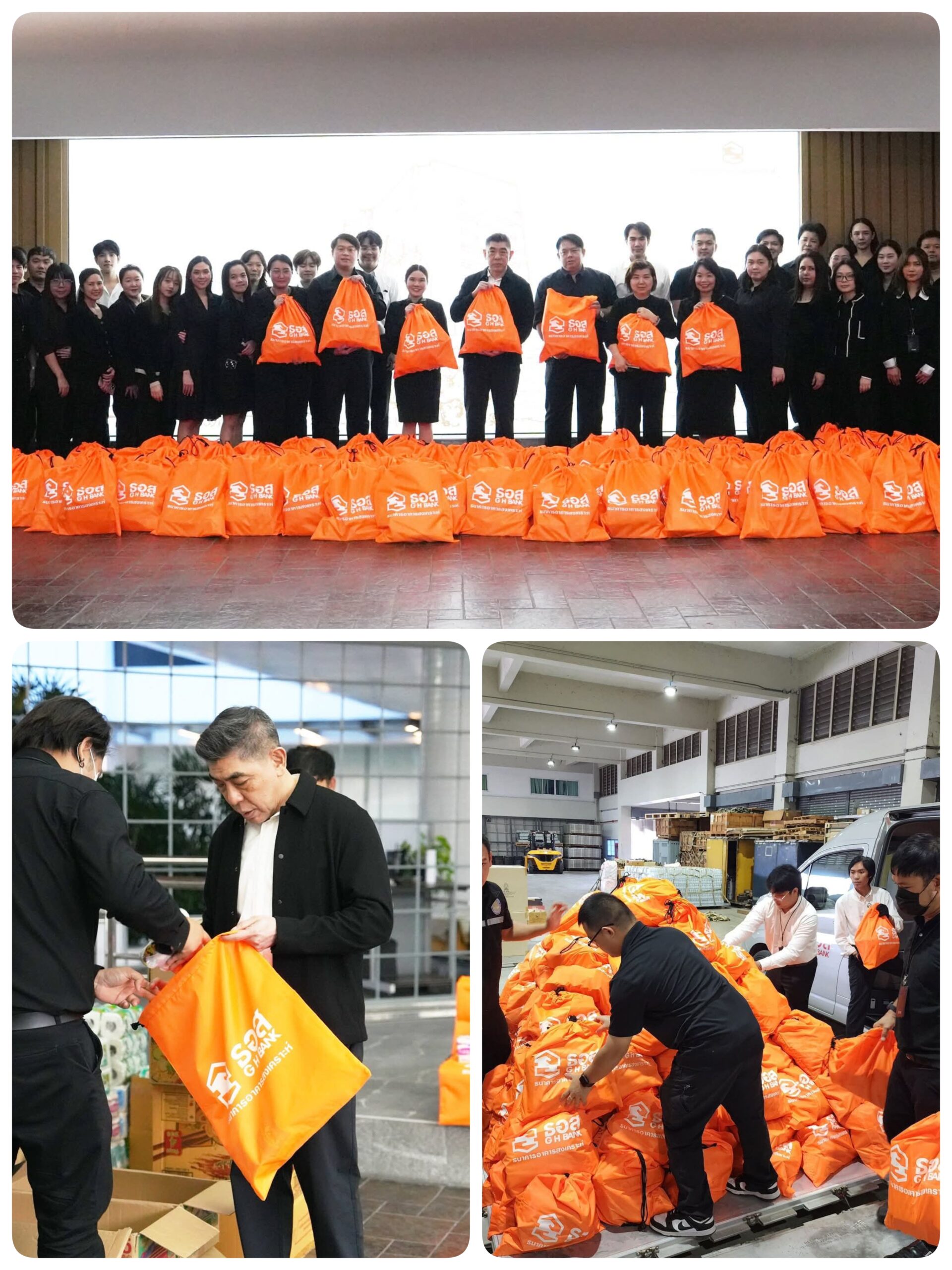 นายกมลภพ วีระพละ กรรมการผู้จัดการธนาคารอาคารสงเคราะห์ (ธอส.) พร้อมด้วยผู้บริหาร และพนักงานธนาคาร ร่วมแรงร่วมใจดำเนินกิจกรรมด้านสังคม (CSR) บรรจุถุงยังชีพ ประกอบด้วย สิ่งของจำเป็นในชีวิตประจำวัน
