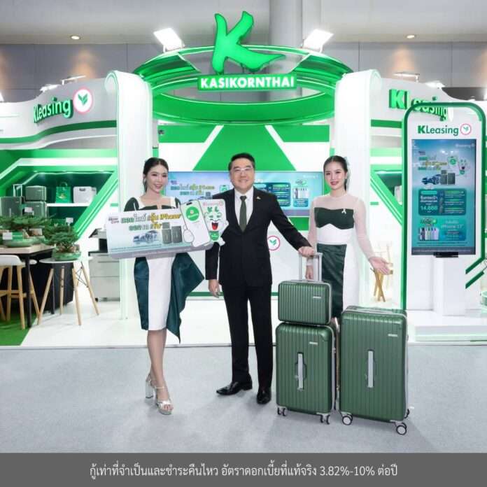 ลีสซิ่งกสิกรไทยมอบข้อเสนอสุดพิเศษส่งท้ายปีในงานมหกรรมยานยนต์ Motor Expo 2025 ครั้งที่ 42 ให้ลูกค้าที่ แอดไลน์ @kleasingofficial ลุ้นรับไอโฟน 17 จำนวน 6 เครื่อง และลูกค้าที่สมัครสินเชื่อรถยนต์ใหม่ในงานรับกระเป๋าเดินทางยกเซต พร้อมชูความเป็นผู้นำด้านการให้สินเชื่ออย่างรับผิดชอบและเป็นธรรม (Responsible Lending) ด้วย “K OK” แพลตฟอร์มสมัครสินเชื่อรถยนต์ด้วยตนเอง ที่ช่วยให้ลูกค้าทราบผลวงเงินอนุมัติจริงก่อนออกรถ ตั้งเป้าปริมาณยอดธุรกิจผ่านช่องทางดิจิทัลสูงกว่า 50%
