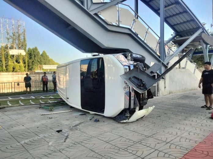 เมื่อเวลา 08.00 น. วันที่ 23 ธ.ค.68 ตำรวจจราจร สน.บางเขน รับแจ้งเหตุรถตู้เสียหลักพลิกคว่ำตะแคง บริเวณวงเวียนบางเขน แขวงอนุสาวรีย์ เขตบางเขน กทม. จึงรุดไปตรวจสอบพร้อมรถยกสไลด์ และอาสาสมัครกู้ภัยที่เกิดเหตุอยู่ฝั่งถนนพหลโยธิน มุ่งหน้าสะพานใหม่ พบรถตู้โดยสาร ยี่ห้อโตโยต้า สีขาว สภาพหน้ารถพังยับ พลิกคว่ำตะแคงขวาอยู่บนฟุตปาธ บริเวณใต้บันไดทางขึ้นรถไฟฟ้าสถานีวัดพระศรีฯ ทำให้ผู้ขับขี่ได้รับบาดเจ็บท่อนขาติดคาอยู่ใต้คอนโซงหน้ารถ เจ้าหน้าที่จึงช่วยเหลือนำตัวออกมาได้