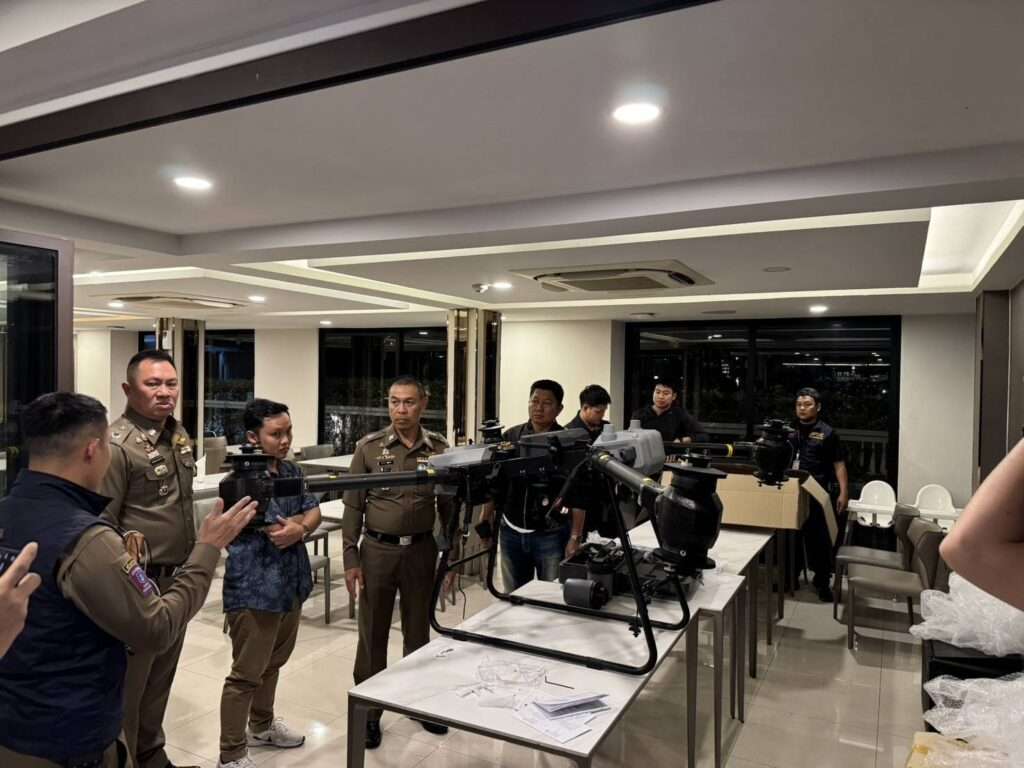 เจ้าหน้าที่ตำรวจรายงานผลการตรวจสอบกรณีตรวจยึดโดรนในพื้นที่ สน.ลาดกระบัง หลังสืบทราบความเคลื่อนไหวต้องสงสัยเกี่ยวกับการลำเลียงอากาศยานไร้คนขับออกนอกราชอาณาจักร ก่อนเข้าควบคุมสถานการณ์และตรวจยึดของกลางได้สำเร็จ