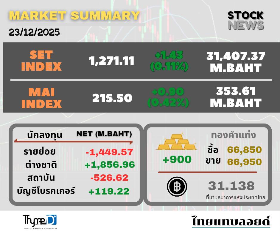 สรุปภาวะการลงทุนในตลาดหลักทรัพย์ ประจำวันที่ 23 ธันวาคม 2568