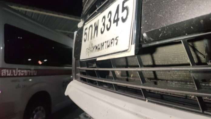 จากการตรวจสอบพบว่า รถคันดังกล่าวติดแผ่นป้ายทะเบียนหมายเลข 5 กพ 3345 กรุงเทพมหานคร แต่เมื่อตรวจสอบอย่างละเอียดพบว่าเป็นทะเบียนสวม โดยด้านหลังรถพบแผ่นป้ายทะเบียนอีกชุด คือหมายเลข 2 กผ 7778 กรุงเทพมหานคร