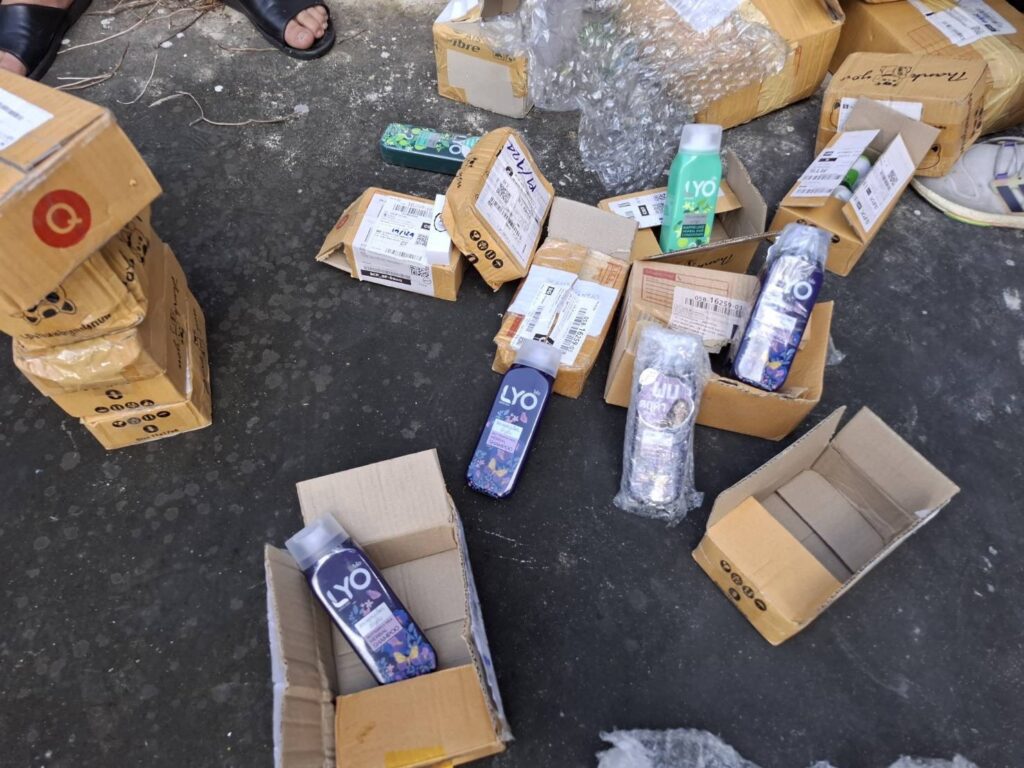 จุดแรกเป็นบ้านพักซึ่งใช้เป็นสถานที่รับพัสดุตีกลับ และจุดที่สองเป็นโกดังเก็บสินค้า พบผลิตภัณฑ์เครื่องสำอางและแชมพูปลอมหลายยี่ห้อ รวมถึงยาสีฟัน ยาสระผมปลอมยี่ห้ออื่น ๆ อีกจำนวนมาก นอกจากนี้ยังพบสติกเกอร์ ฉลาก หมึกพิมพ์ และอุปกรณ์สำหรับปลอมบรรจุภัณฑ์จำนวนมาก