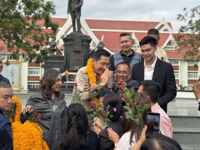 วันที่ 25 ธ.ค.68 บรรยากาศที่ศาลากลางจังหวัดนนทบุรี เต็มไปด้วยความคึกคัก หลังนายชุ้น ณัฐเดช กังสุกุล ปลัดจังหวัดนนทบุรี ตัดสินใจยุติบทบาทในชีวิตข้าราชการ เพื่อเดินหน้าสู่เส้นทางการเมืองอย่างเต็มตัว โดยได้เข้าพบนายเชษฐา โมสิกรัตน์ ผู้ว่าราชการจังหวัดนนทบุรี เพื่อกล่าวอำลาอย่างเป็นทางการ ภายหลังยื่นหนังสือลาออกจากตำแหน่ง ซึ่งมีผลตั้งแต่เวลา 16.30 น. ของวันเดียวกัน