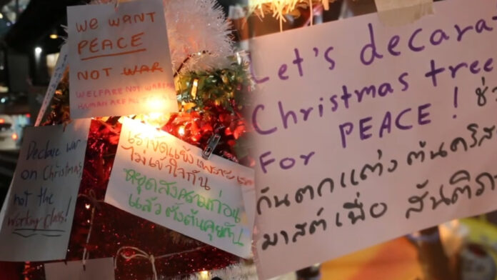 แนวร่วมประชาชนไทย–กัมพูชาเพื่อสันติภาพ จัดกิจกรรม “คริสต์มาสเพื่อสันติภาพ” ที่อนุสาวรีย์ชัยสมรภูมิ