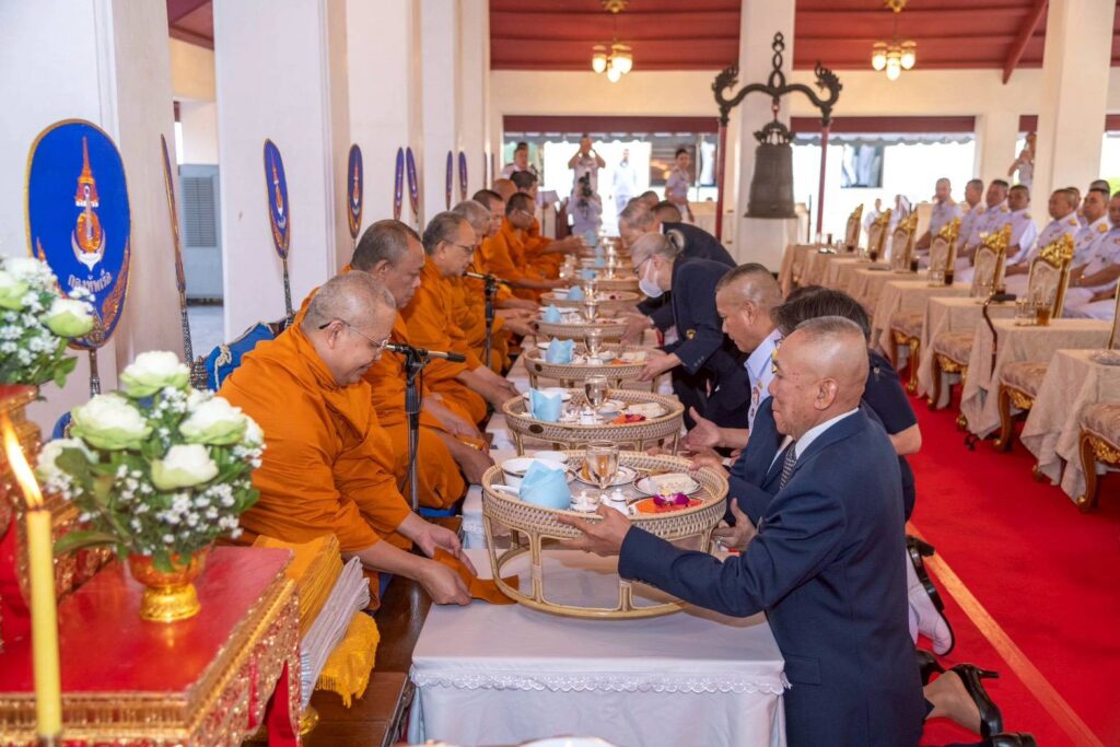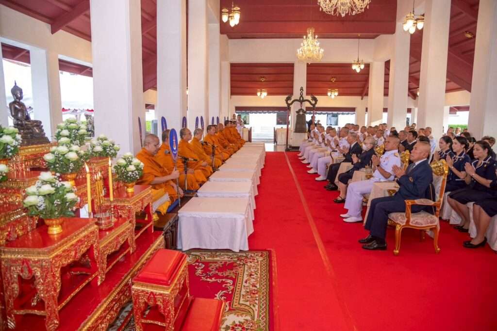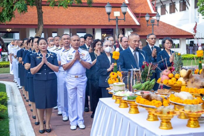 โอกาสนี้ พลเรือเอก ไพโรจน์ เฟื่องจันทร์ ผู้บัญชาการทหารเรือ และนางอารียา เฟื่องจันทร์ นายกสมาคมภริยาทหารเรือ ตลอดจน คณะนายทหารชั้นผู้ใหญ่ และหัวหน้าหน่วยขึ้นตรงกองทัพเรือในพื้นที่กรุงเทพมหานครและปริมณฑลเข้าร่วมในพิธีบำเพ็ญกุศล ณ ท้องพระโรง พระราชวังเดิม และพิธีบวงสรวงดวงพระวิญญาณ ณ ศาลสมเด็จพระเจ้าตากสินมหาราช ภายในกองบัญชาการกองทัพเรือ พระราชวังเดิม